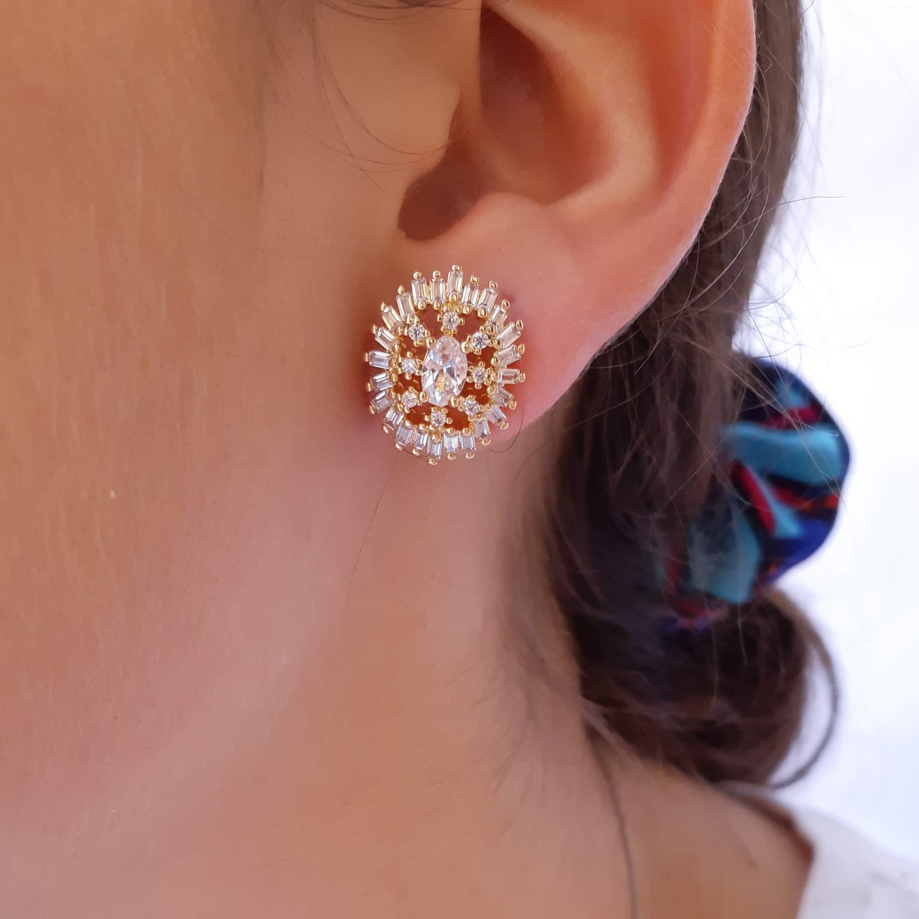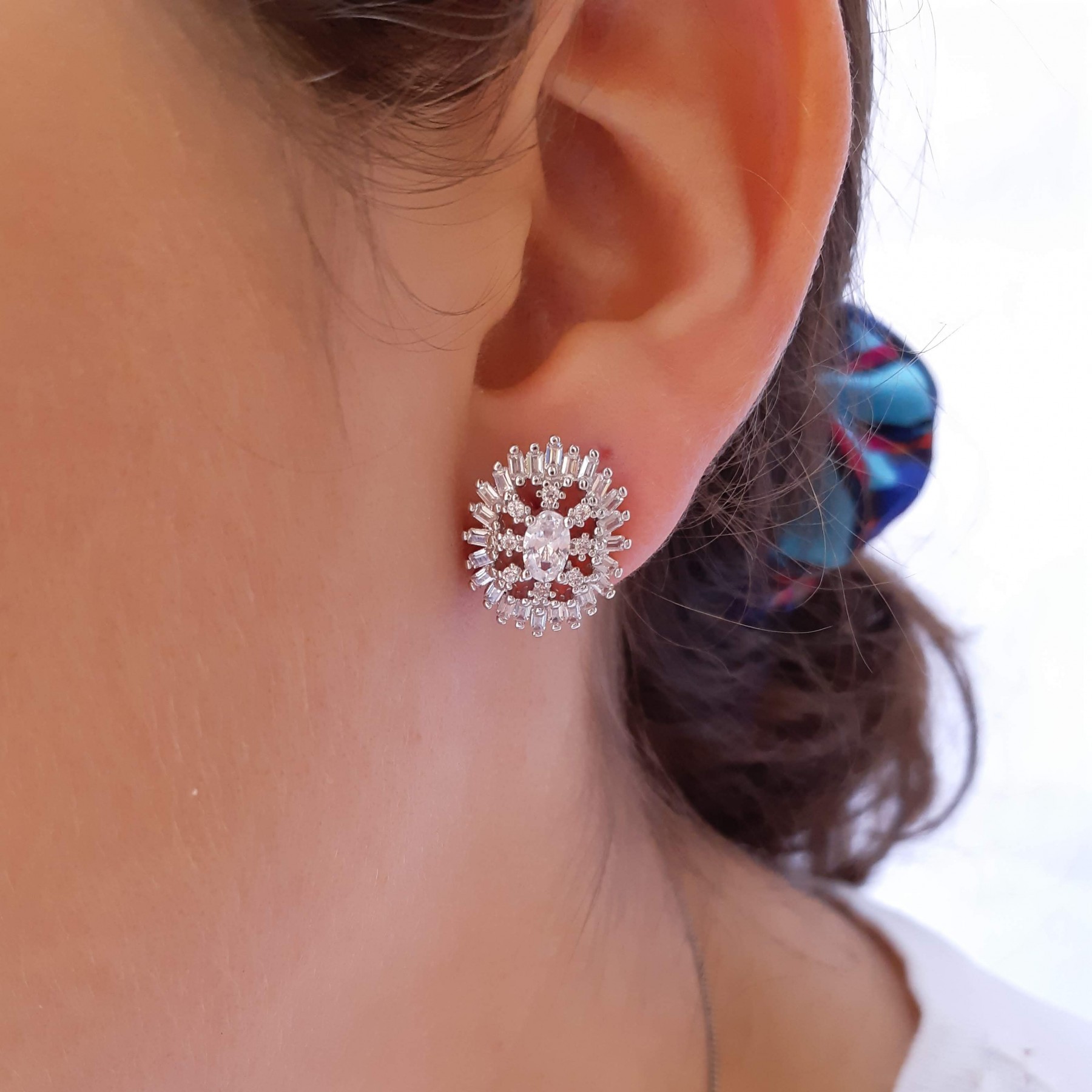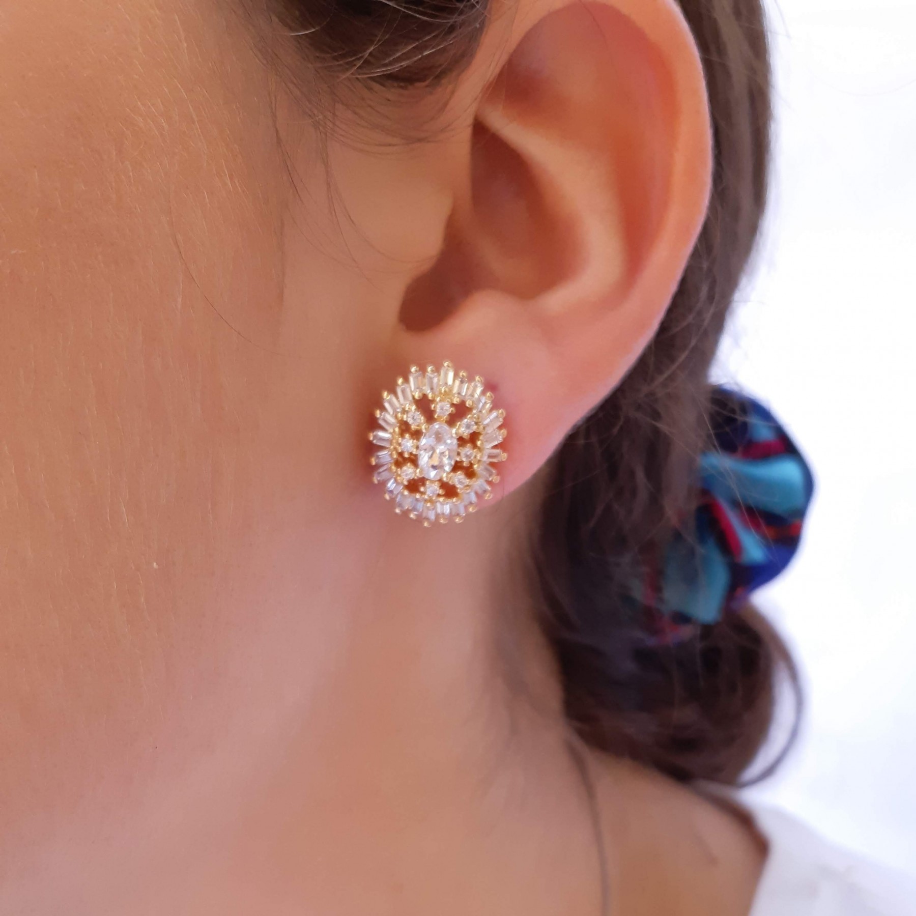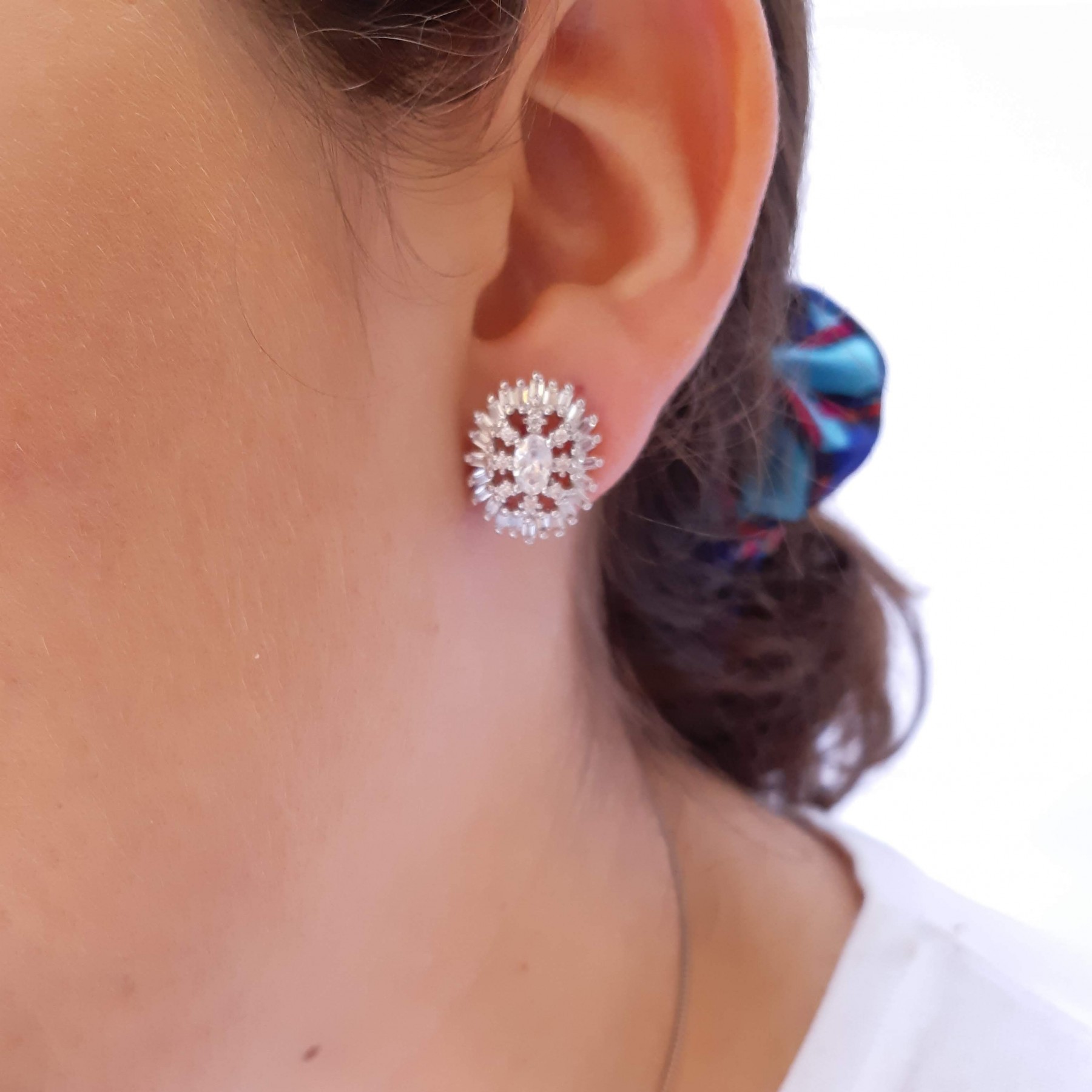 Descrição: Brinco (latão) trabalhado com pedra zircônia retangular, microzircônia e pedra zircônia oval central . Disponivel nas cores cristal e preto.