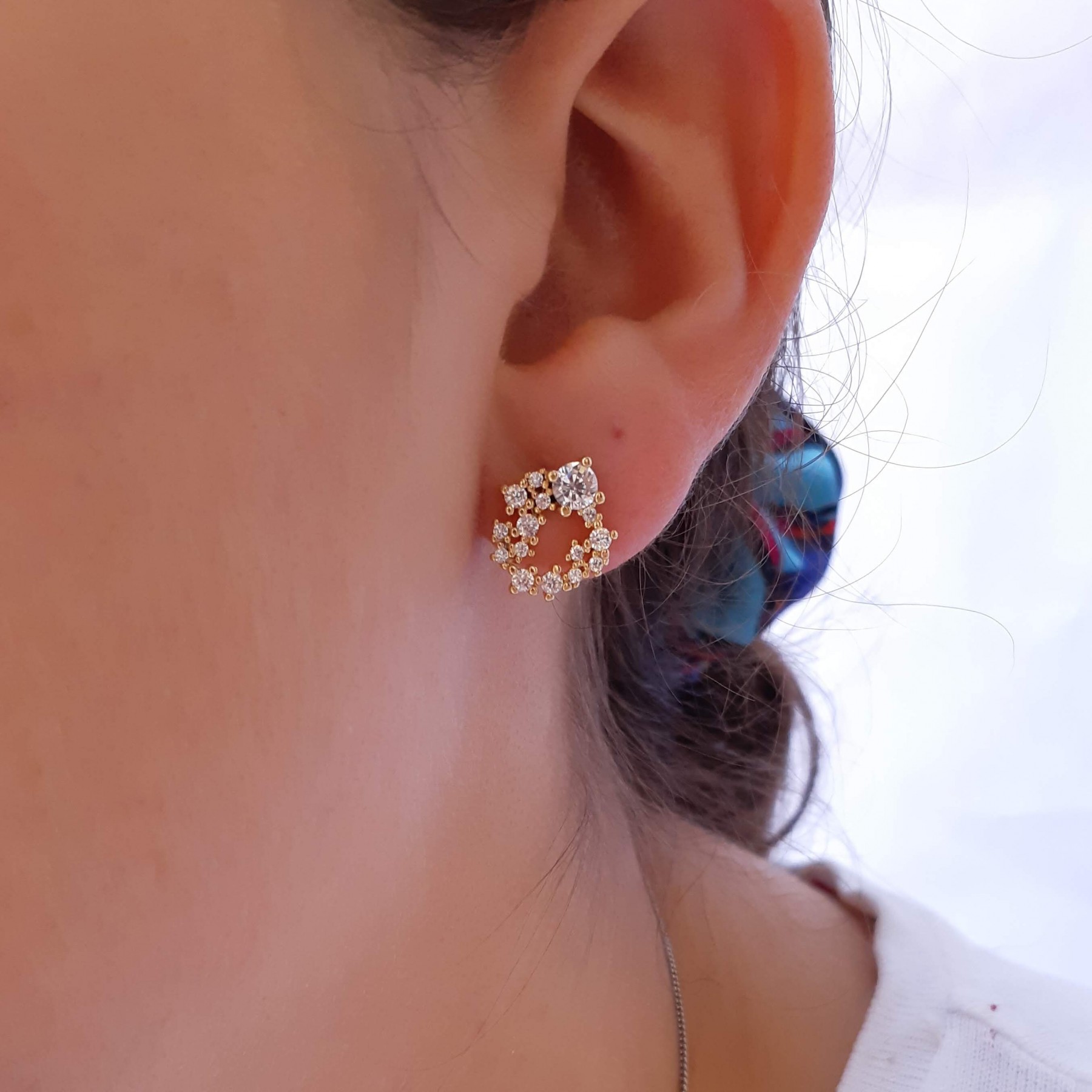 Descrição: Brinco pequeno (latão) trabalhado com pedras zircônia pequenas. Disponivel na cor cristal.