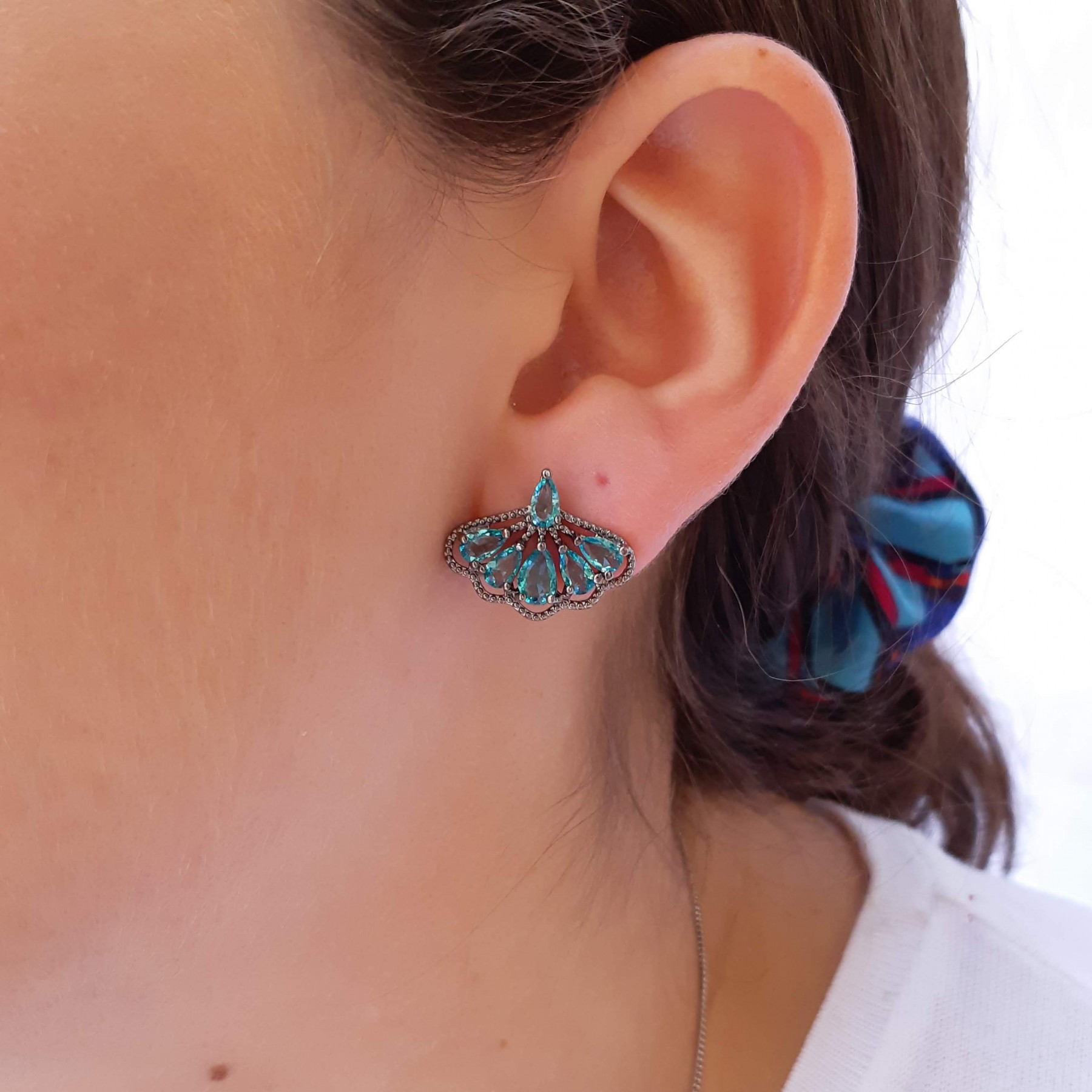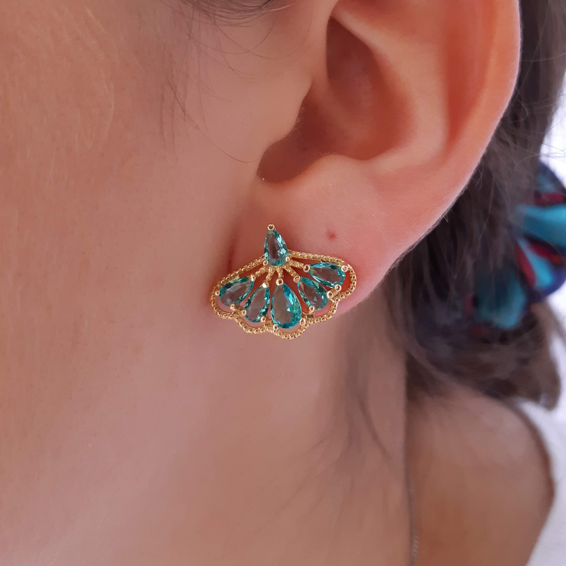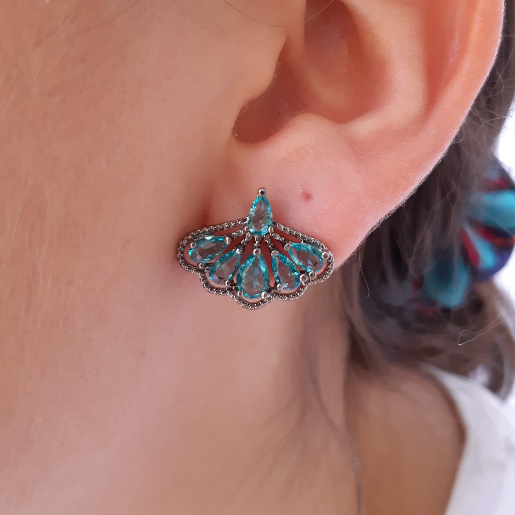 Descrição: Brinco (latão) com formas orgânicas + pedra zircônia gota coloridas. Disponivel nas cores azul turquesa, verde e ametista.