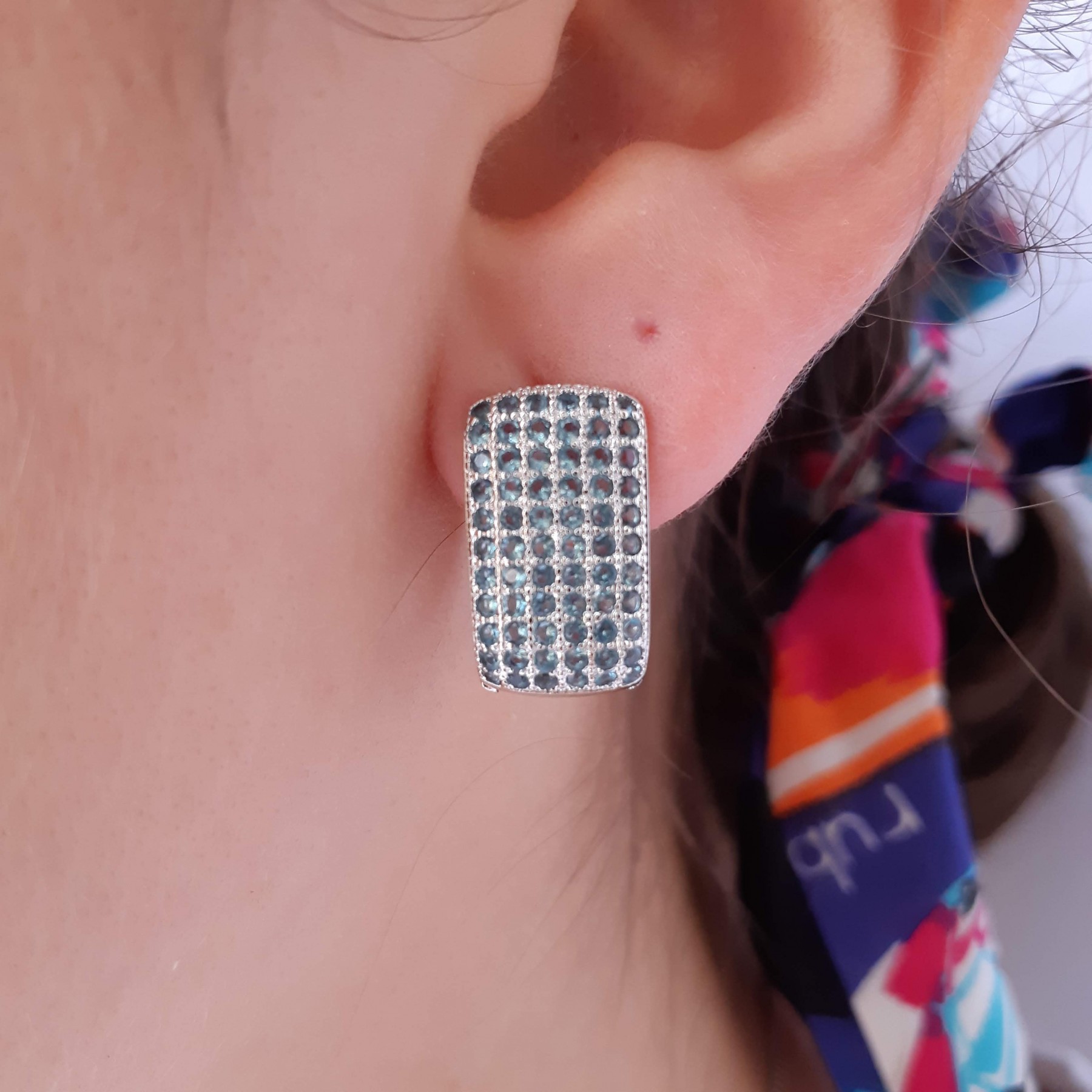 Descrição: Brinco de argola (Latão) com pedra de zircônia coloridas. Disponivel nas cores rosa, champanhe, cristal, rubi e laranja.