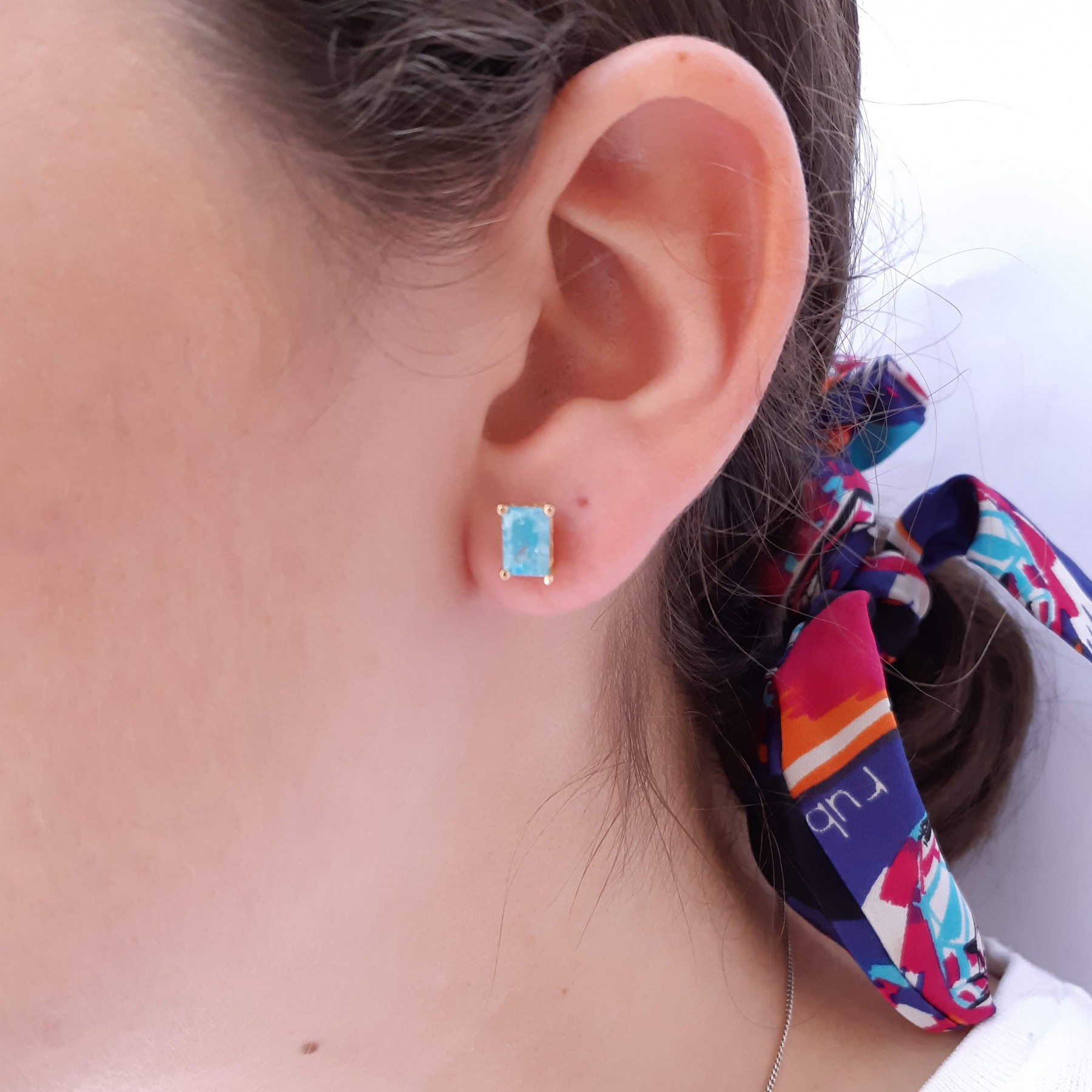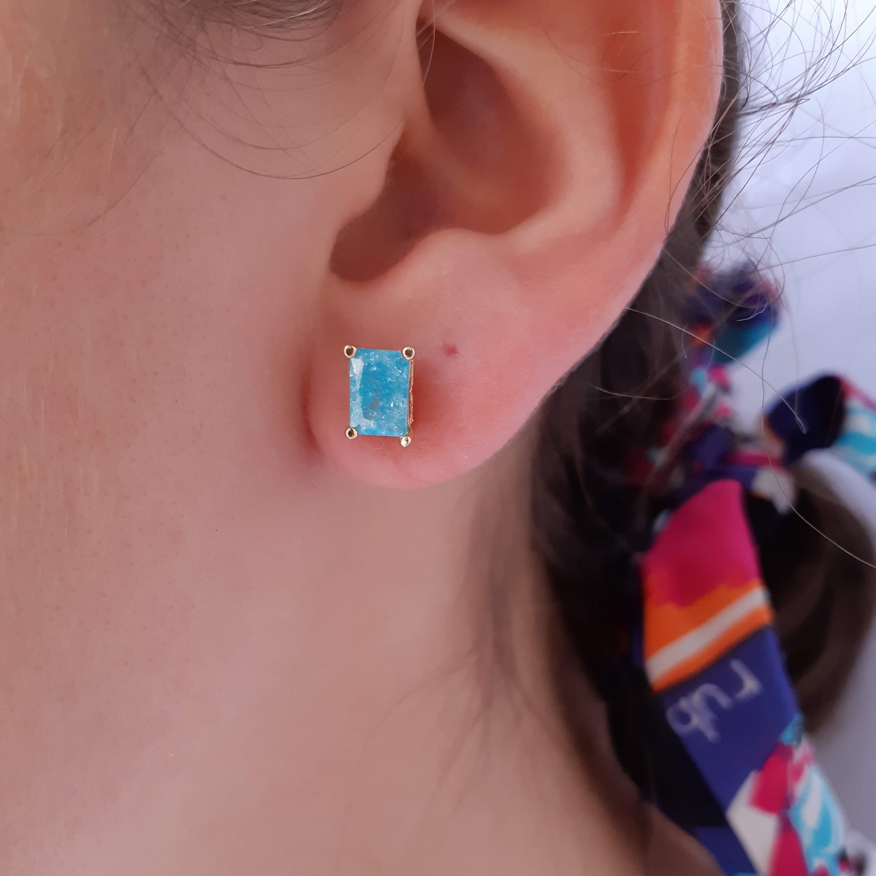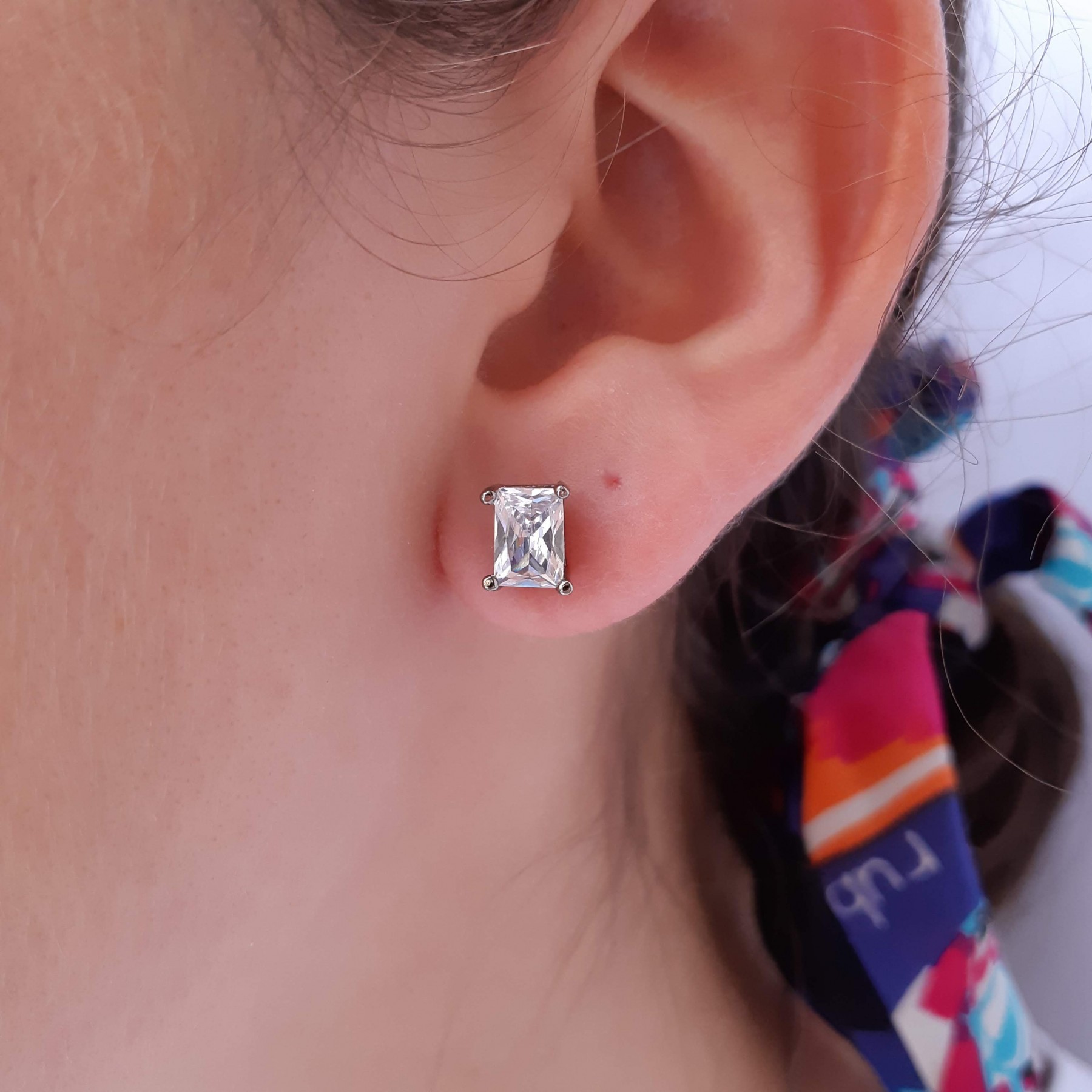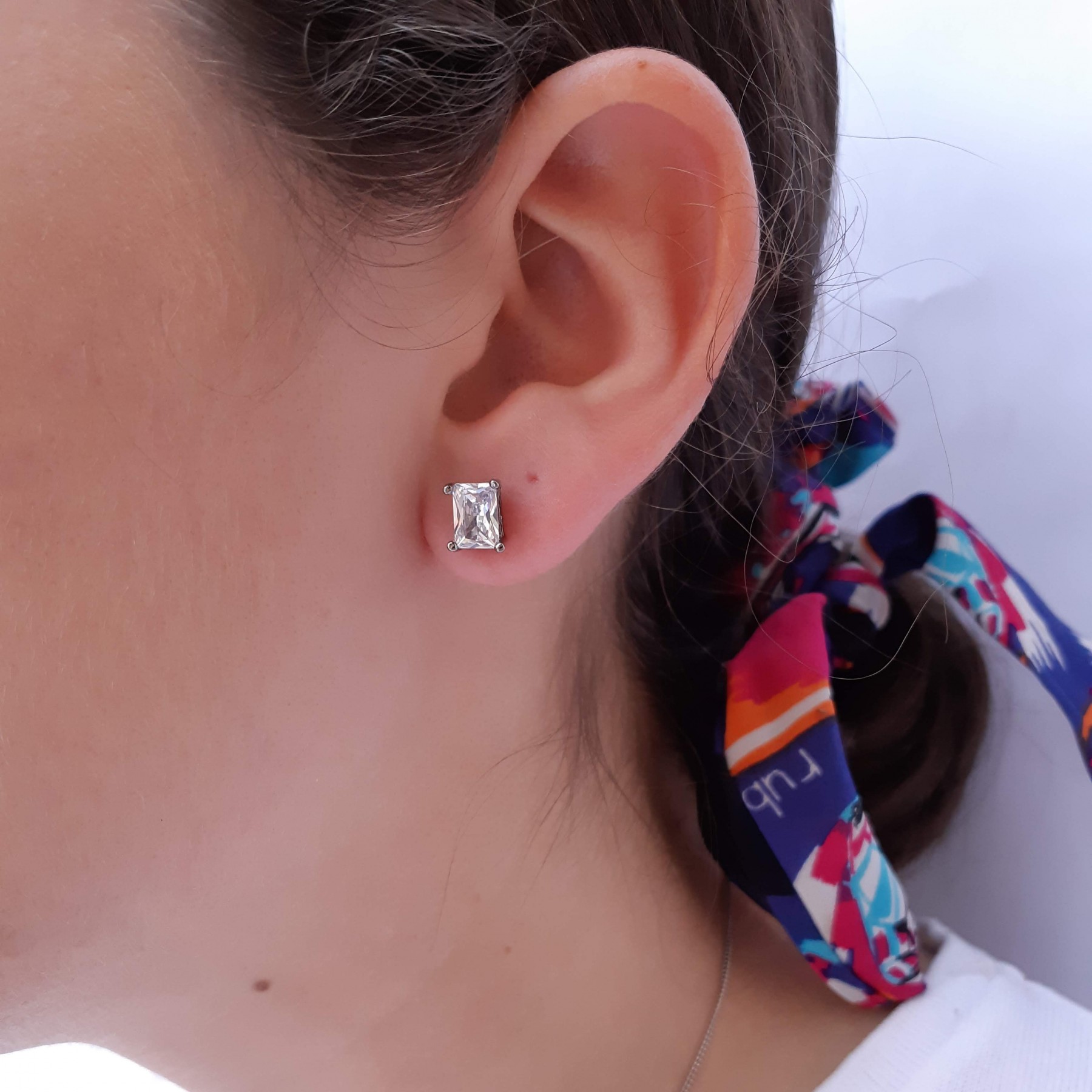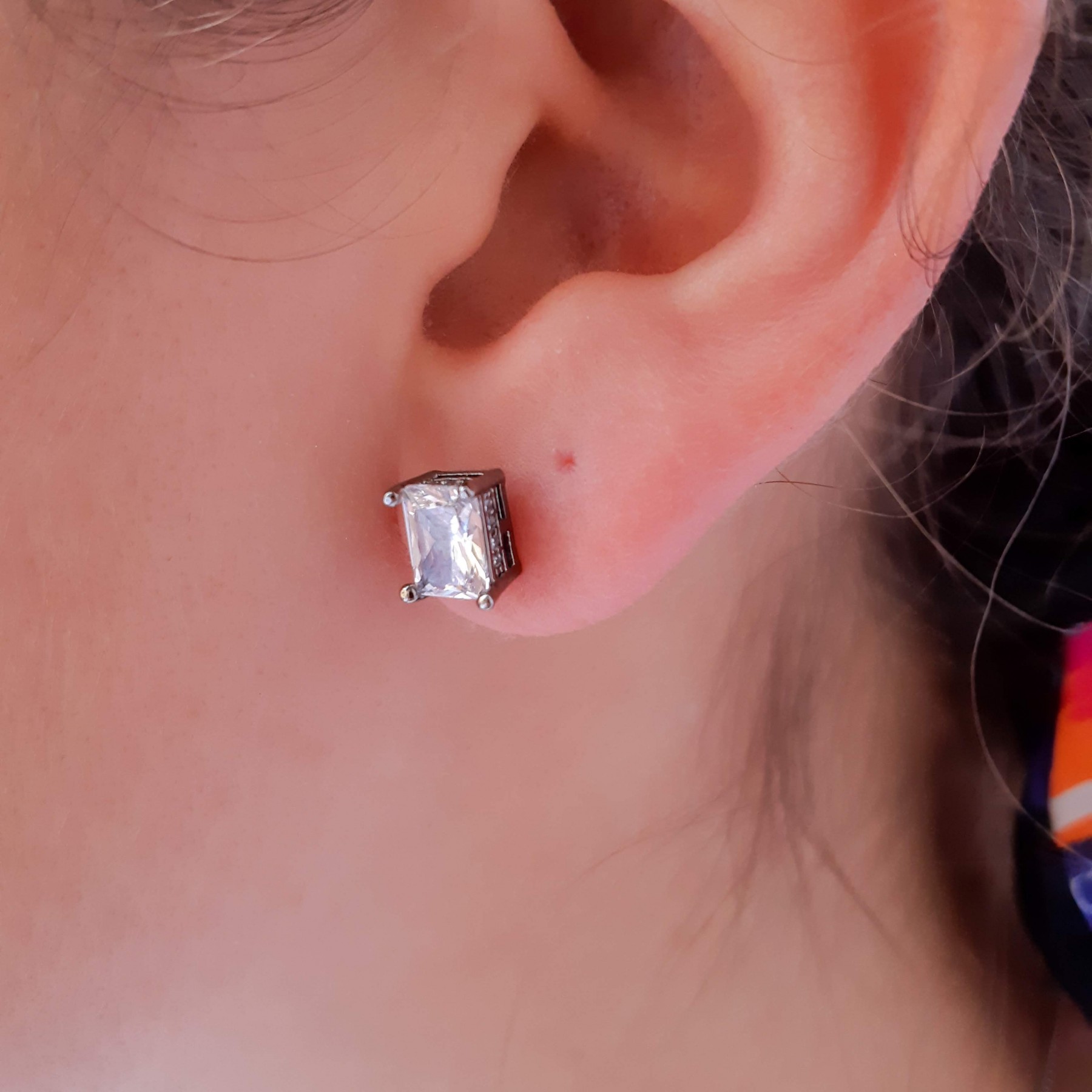 Descrição: Brinco (latão) com pedra zircônia quadrada com microzircônias nas laterais . Disponivel nas cores verde, preto, azul turquesa, rubi.