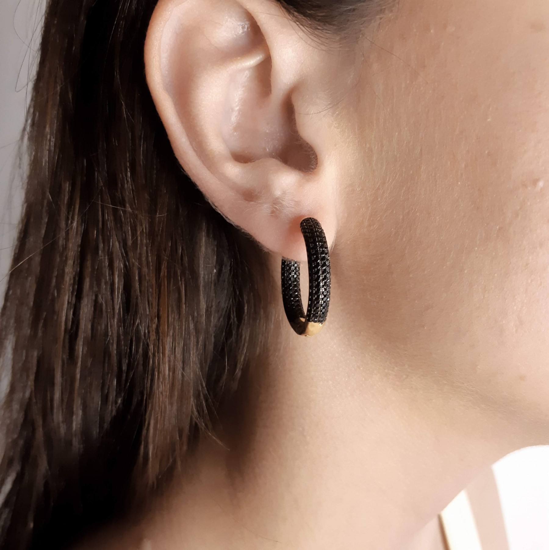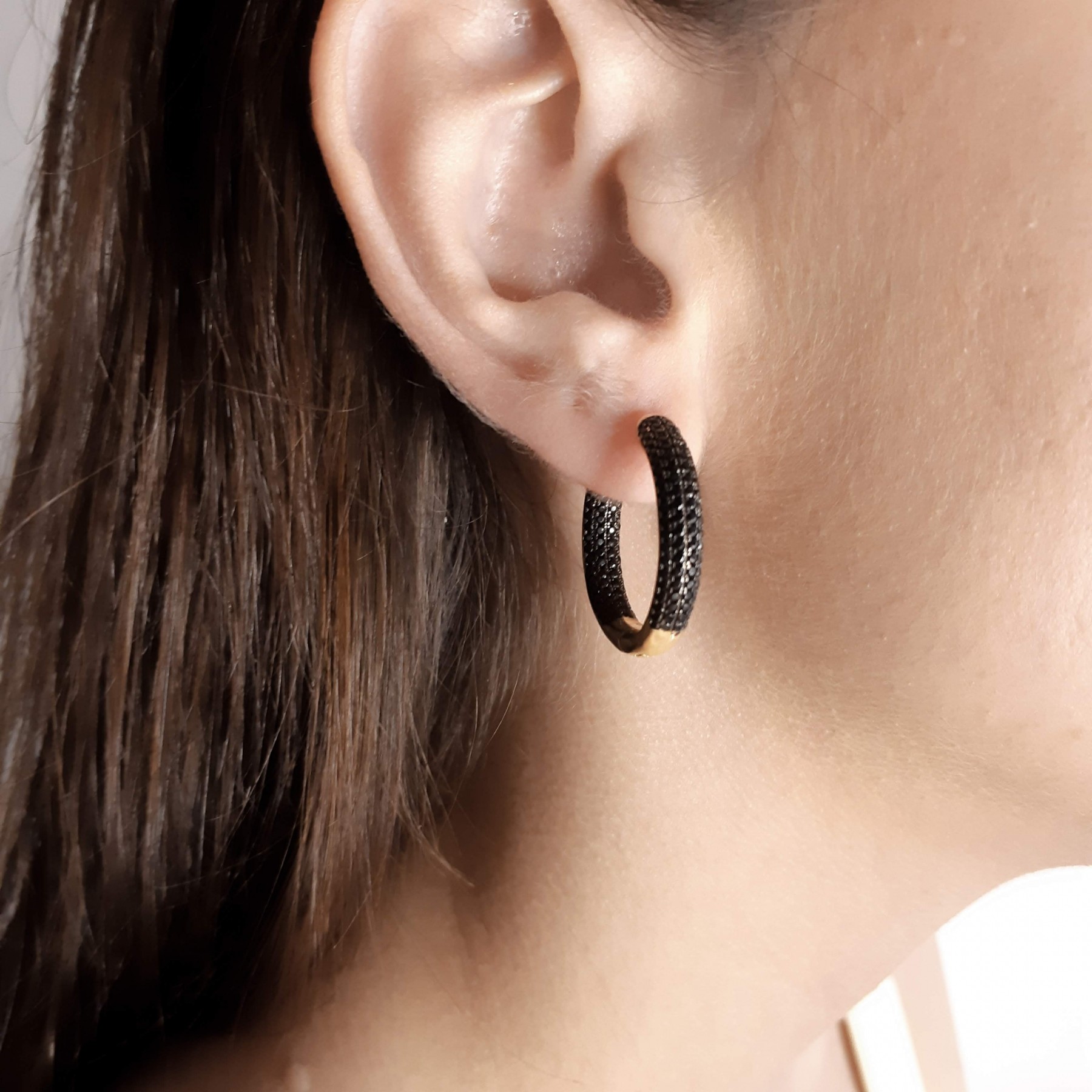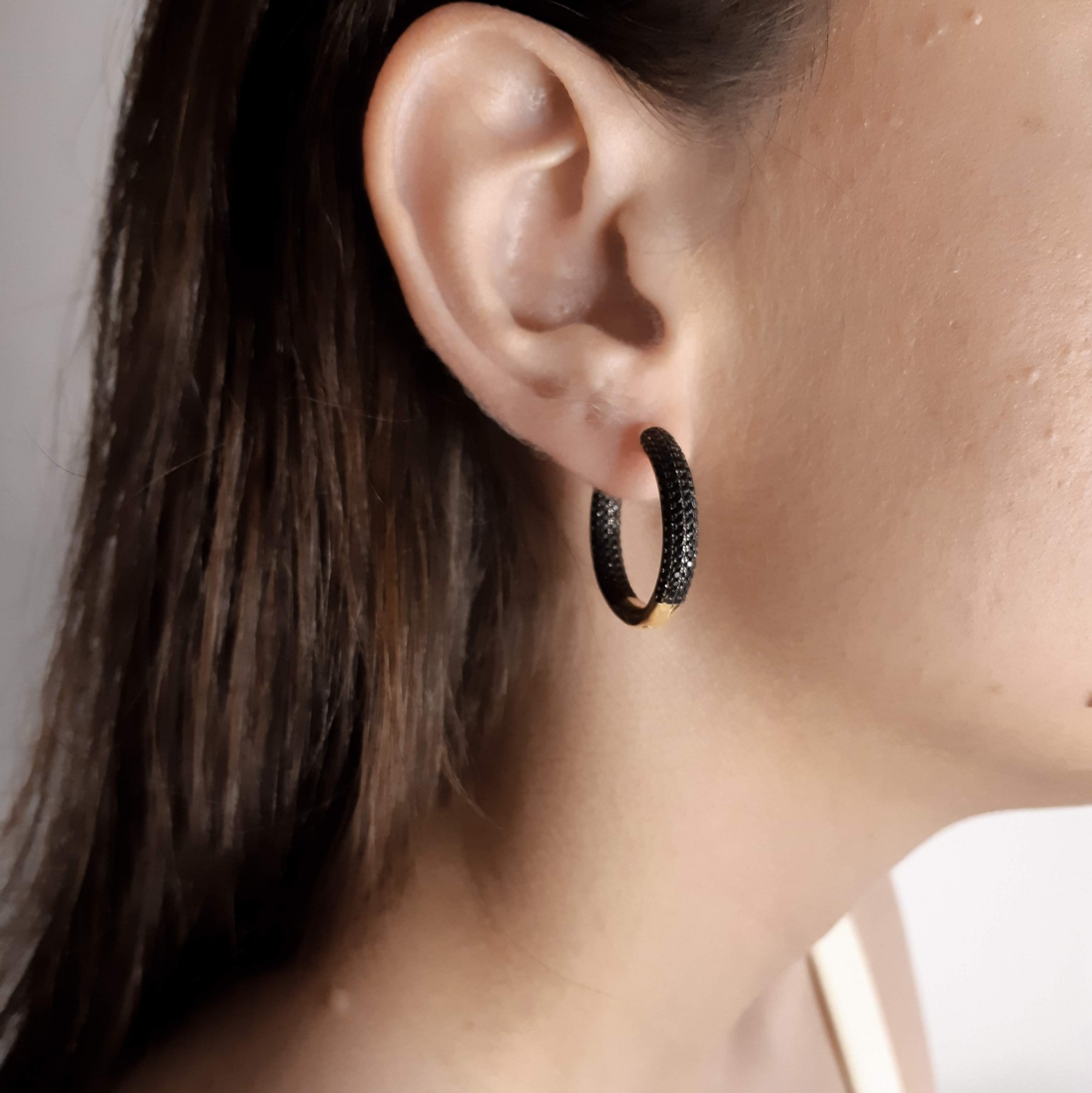 Descrição: Brinco de argola médio (Latão) com pedras de zircônia. Disponivel na cor cristal.