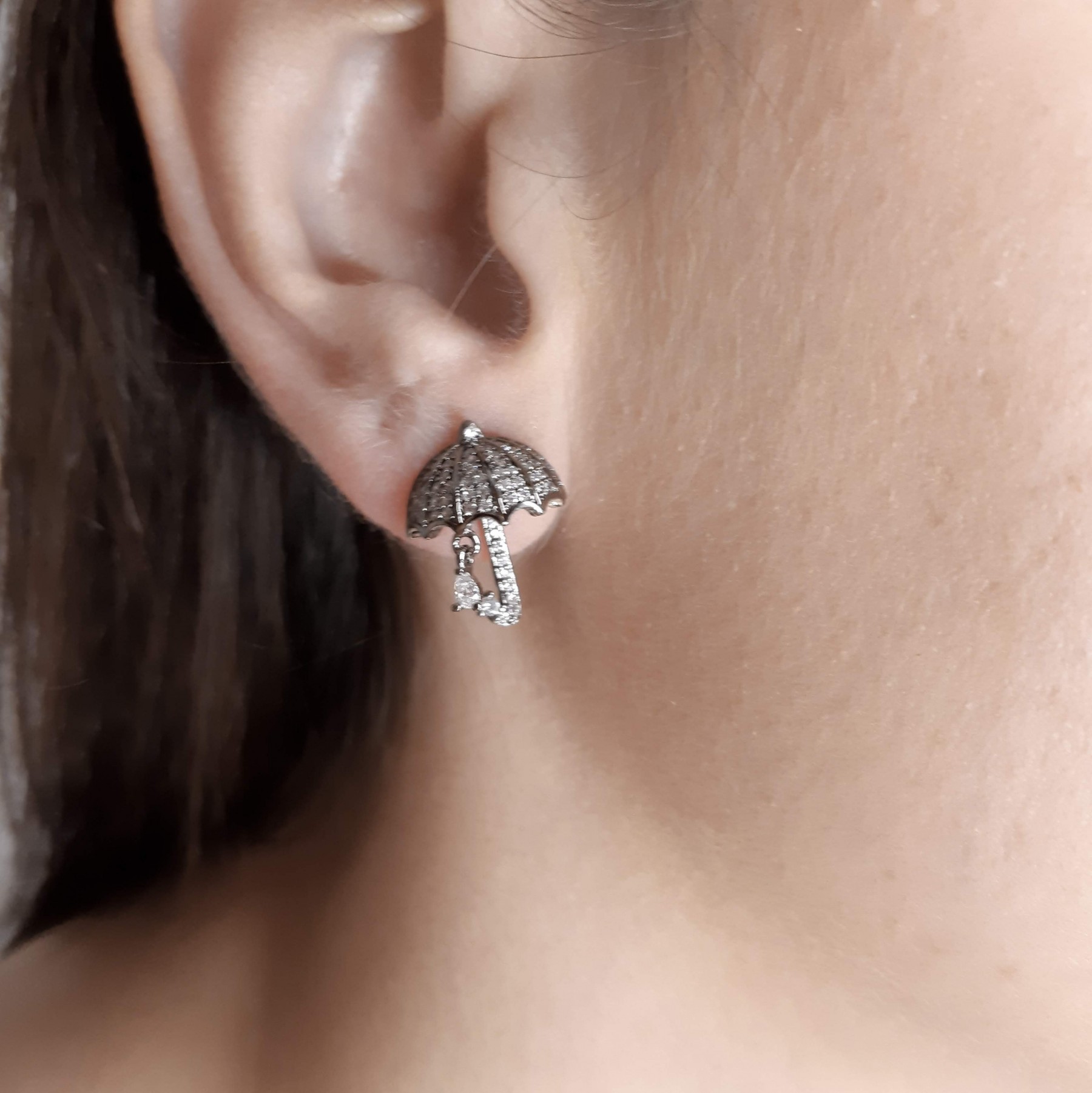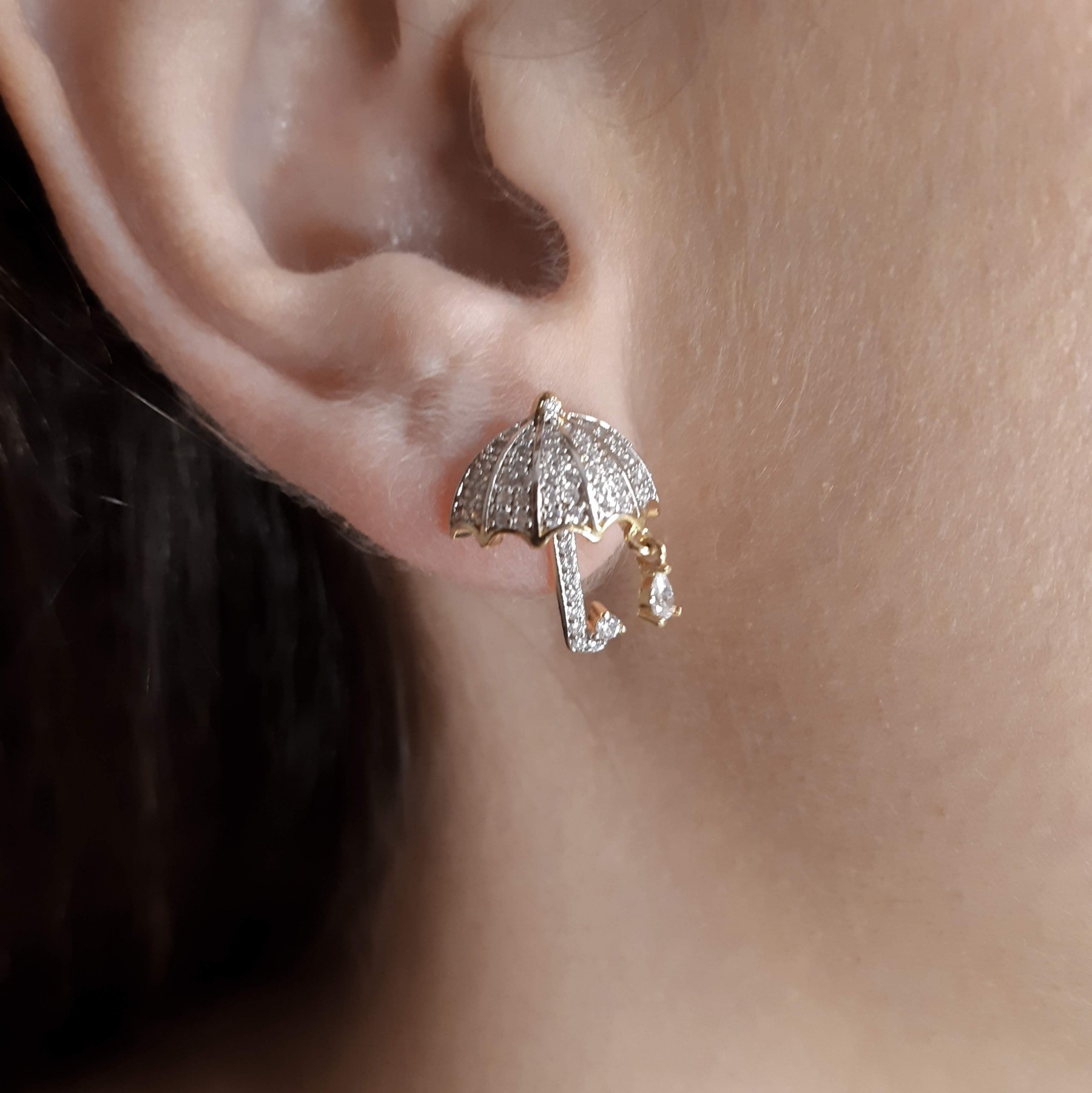 Descrição: Brinco (Latão) Guarda-chuva com pedras de zircônia e gota de pedra zircônia em balanço. Disponivel na cor cristal.