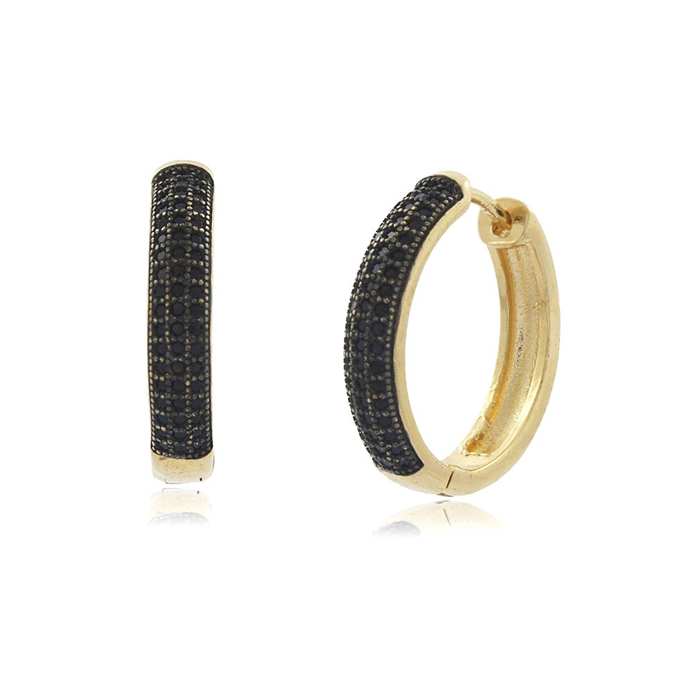 Descrição: Brinco de argola (Latão) com pedras de zircônia. Disponivel na cor preta.