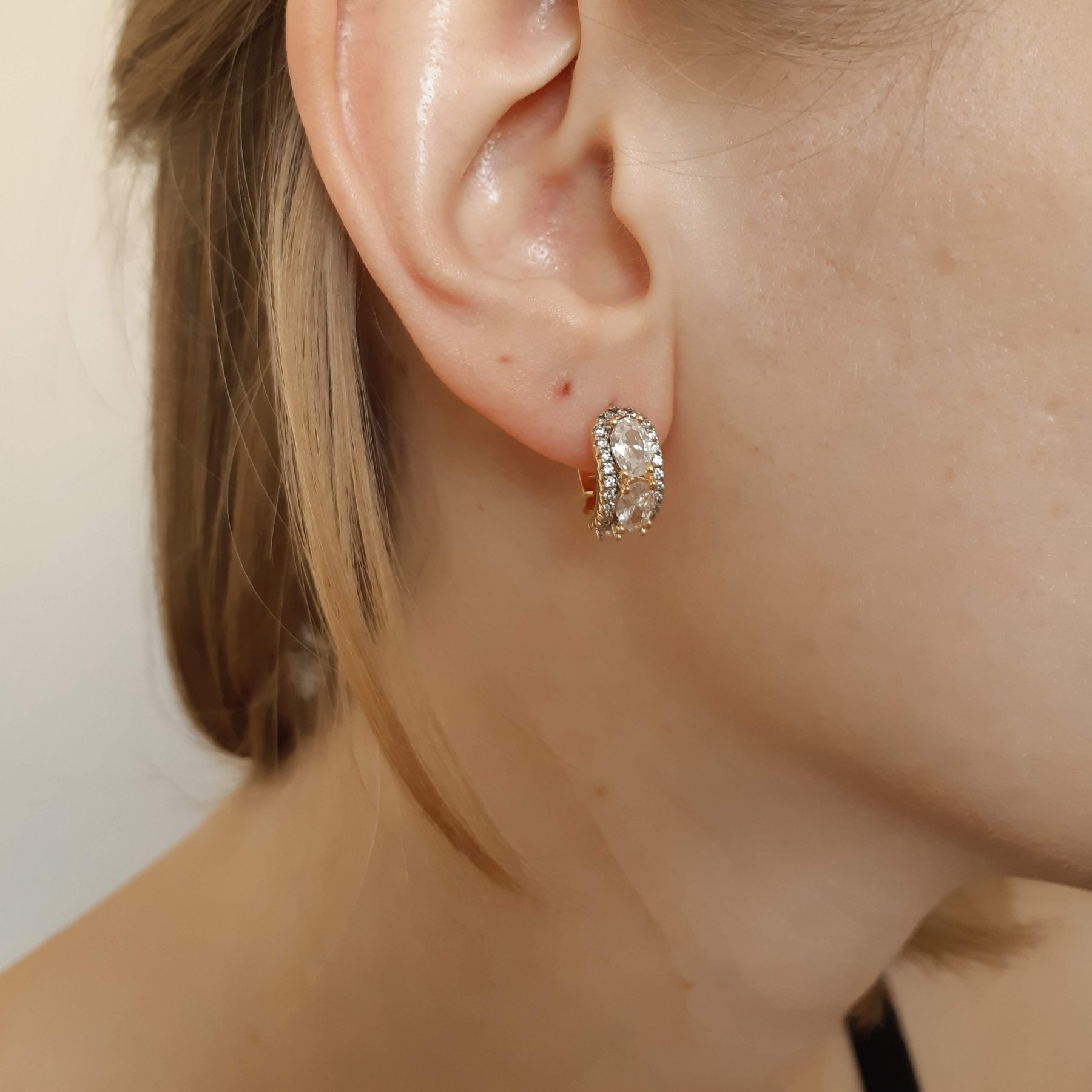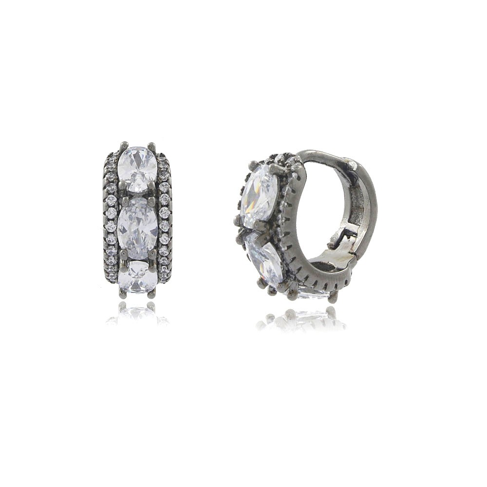 Descrição: Brinco de argola (Latão) com pedras de zircônia cristal de diferentes tamanhos.