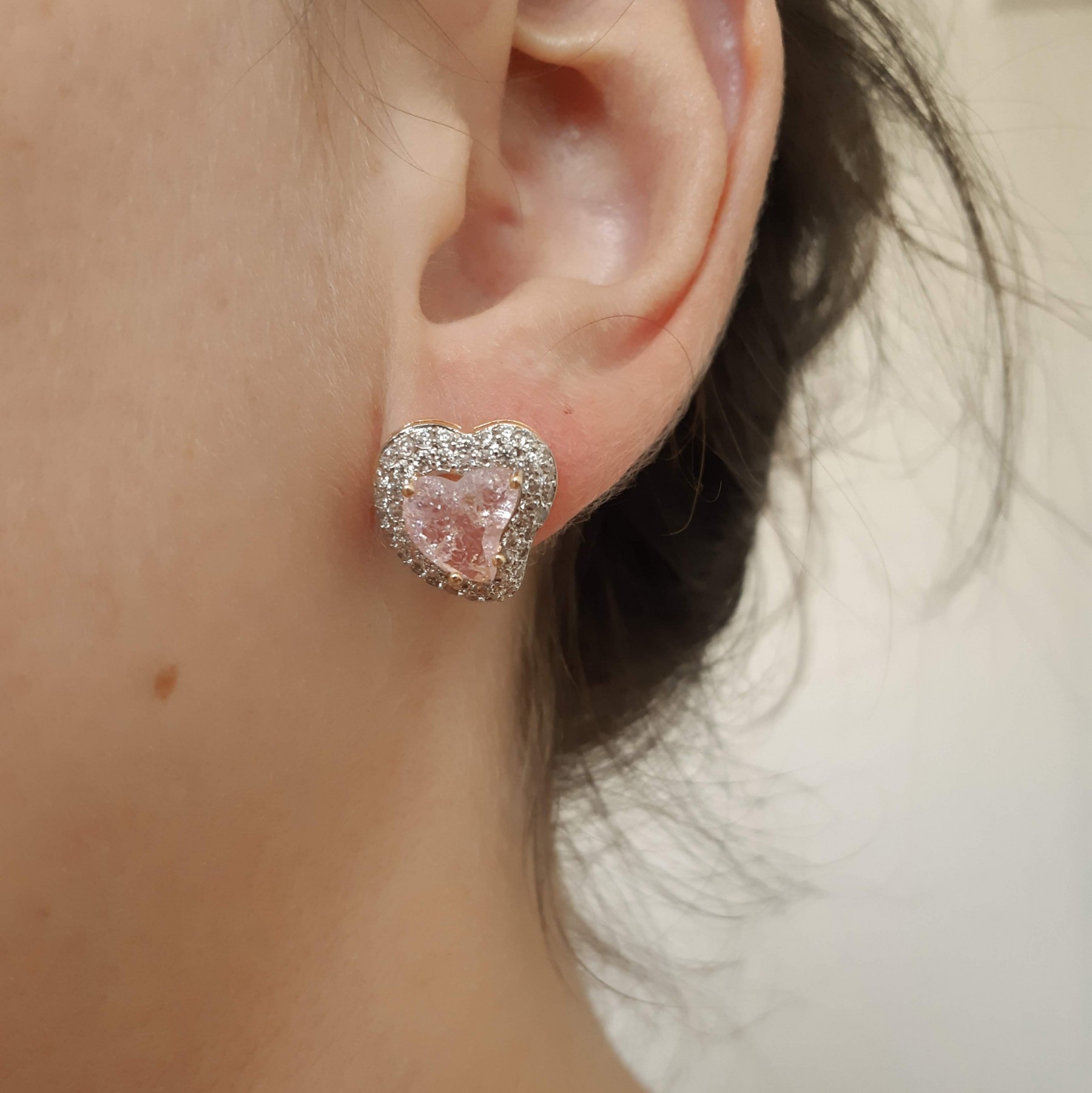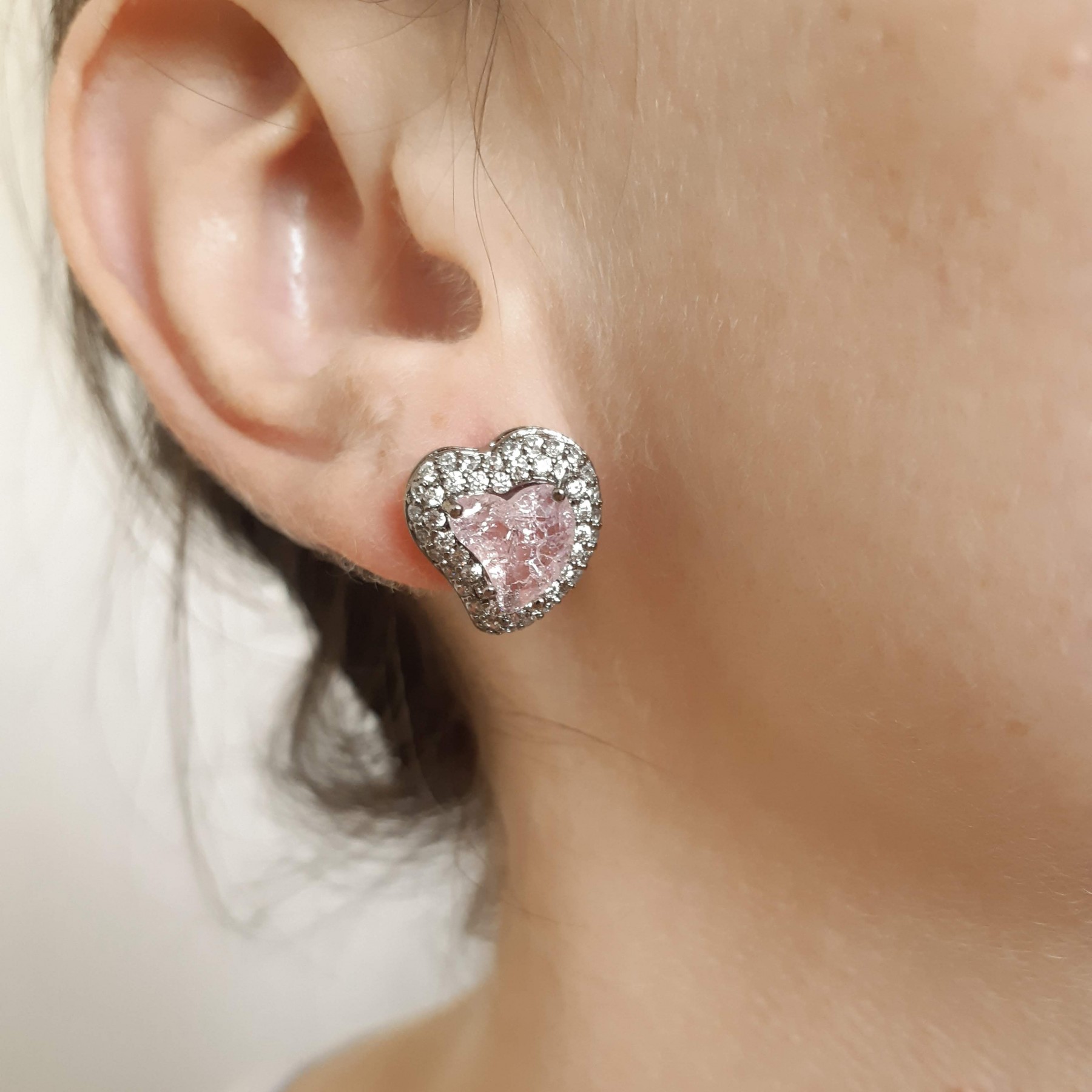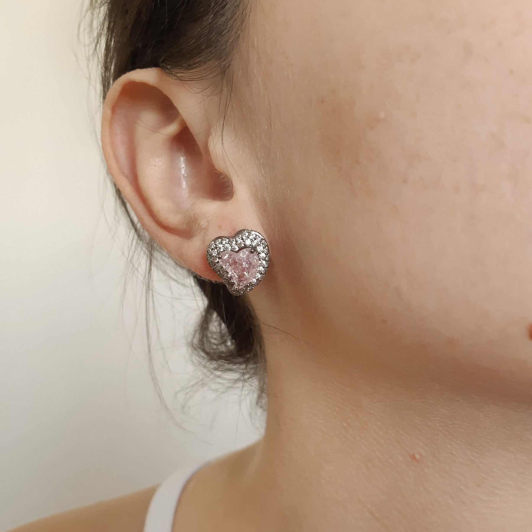 Descrição: Brinco (latão) coração com pedra zircônia colorida coração central e microzircônia cristal cravadas. Disponivel nas cores cristal e rosa.