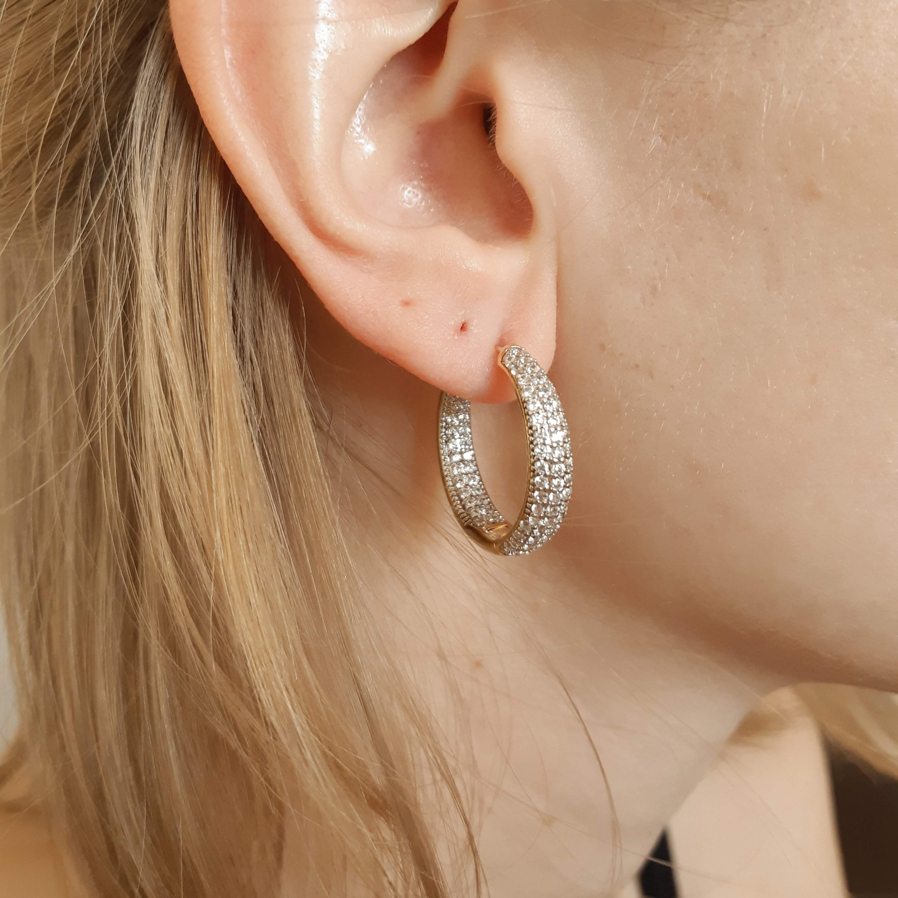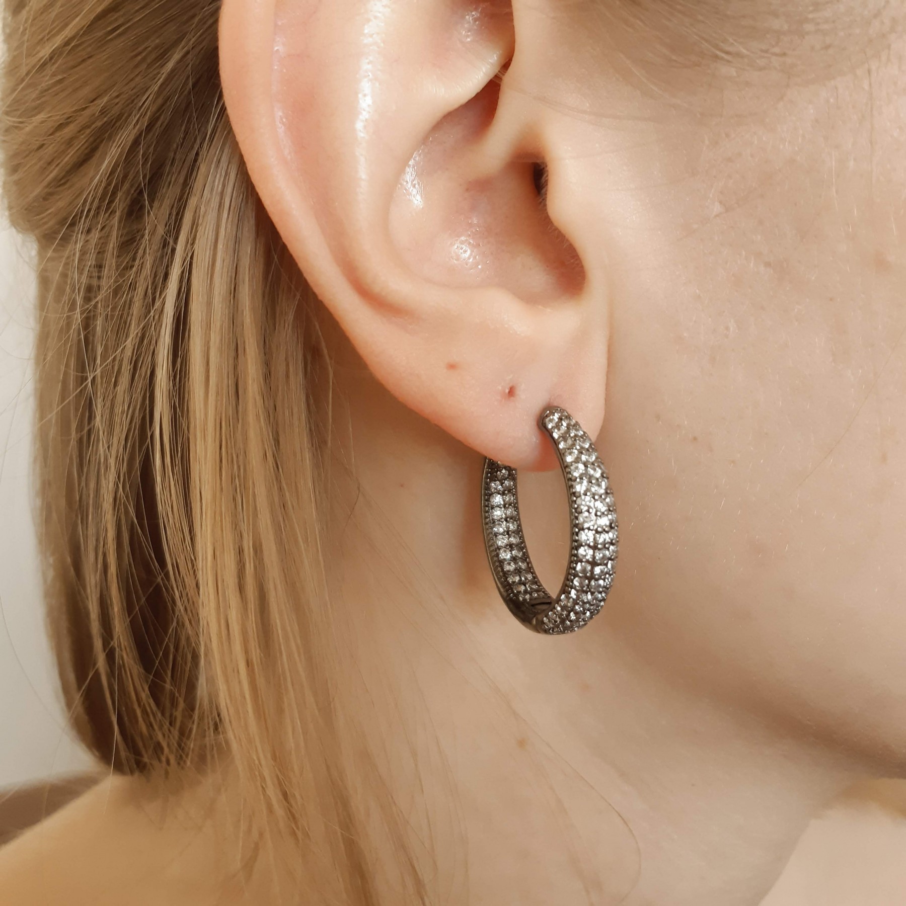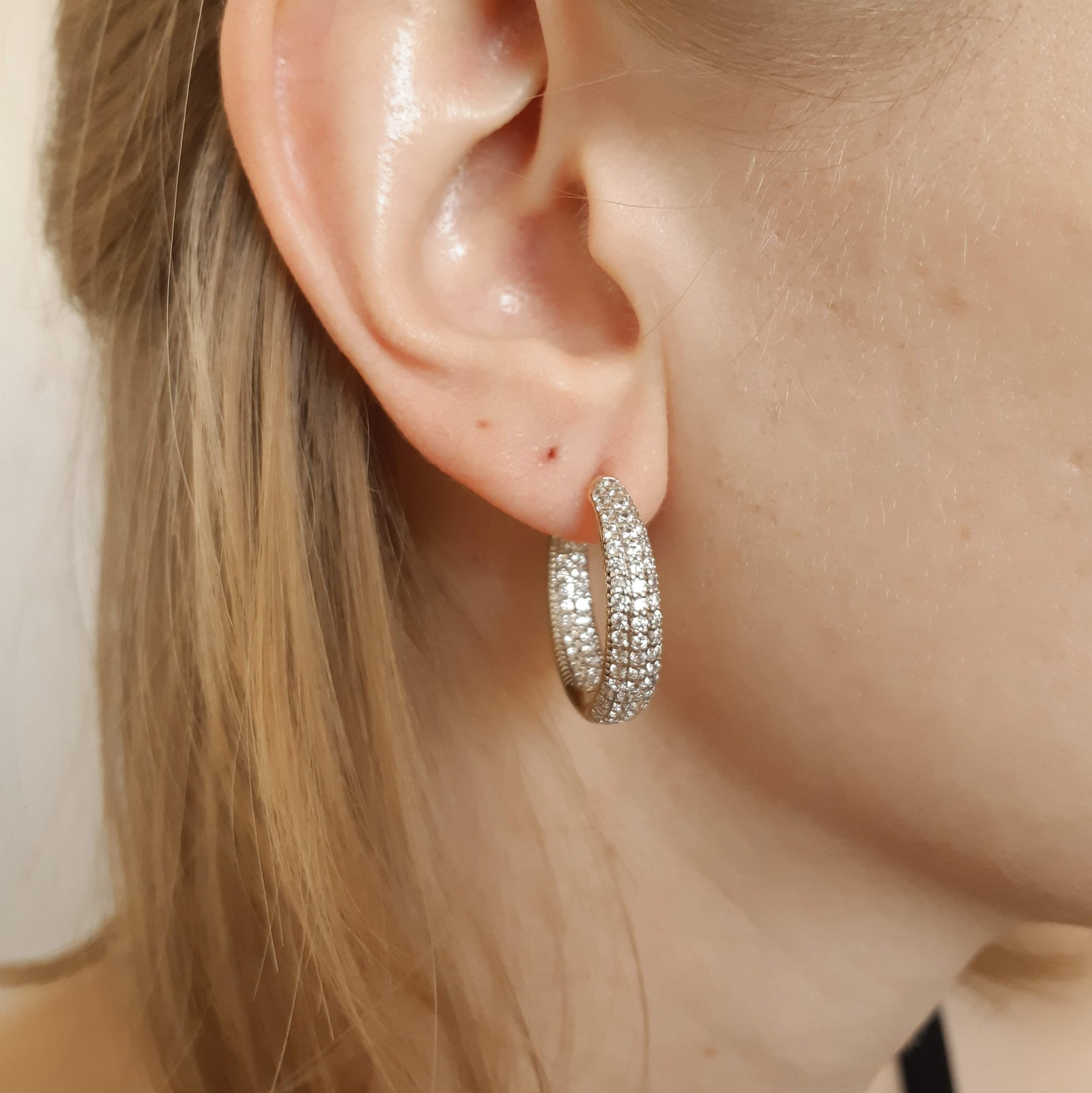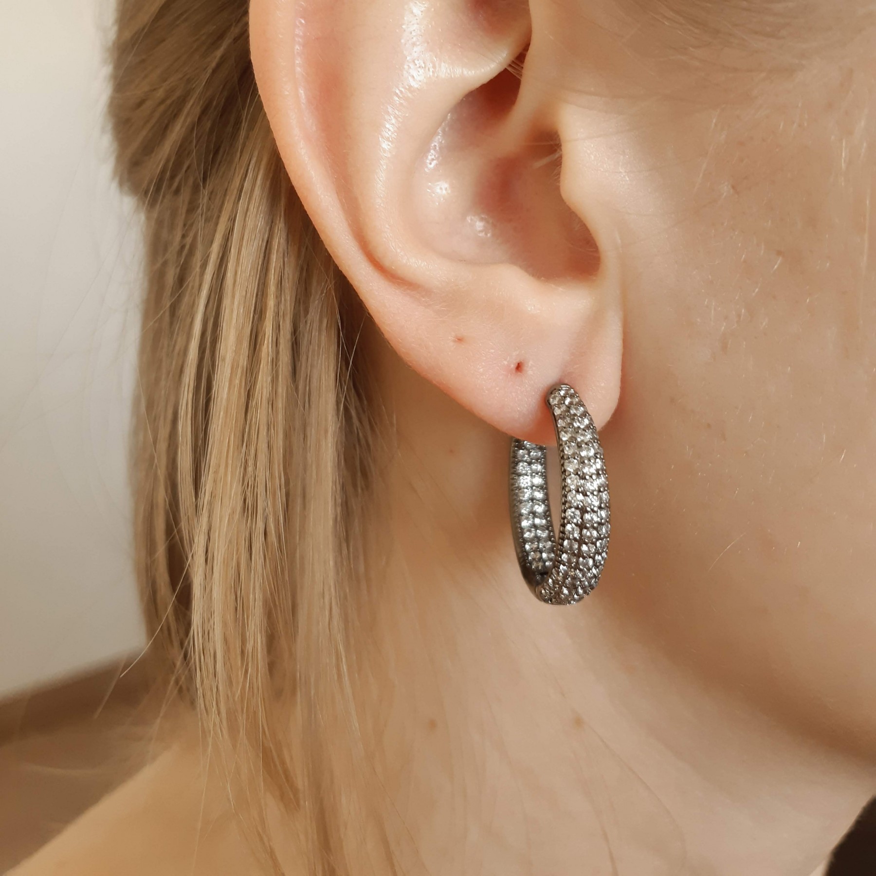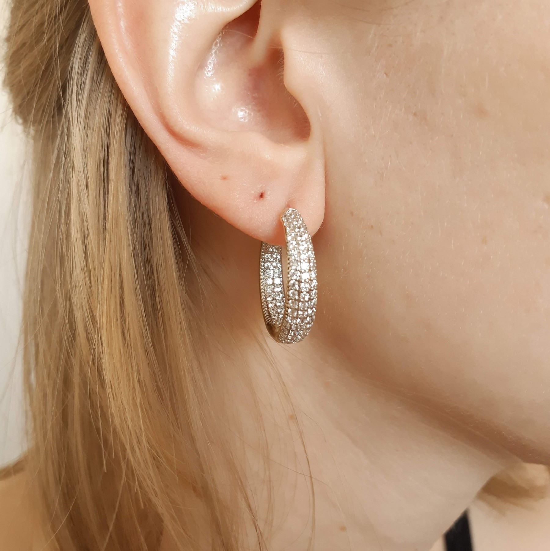 Descrição: Brinco (latão) de argola grande com pedra microzircônia na parte interna e externa da argola. Disponivel na cor cristal.