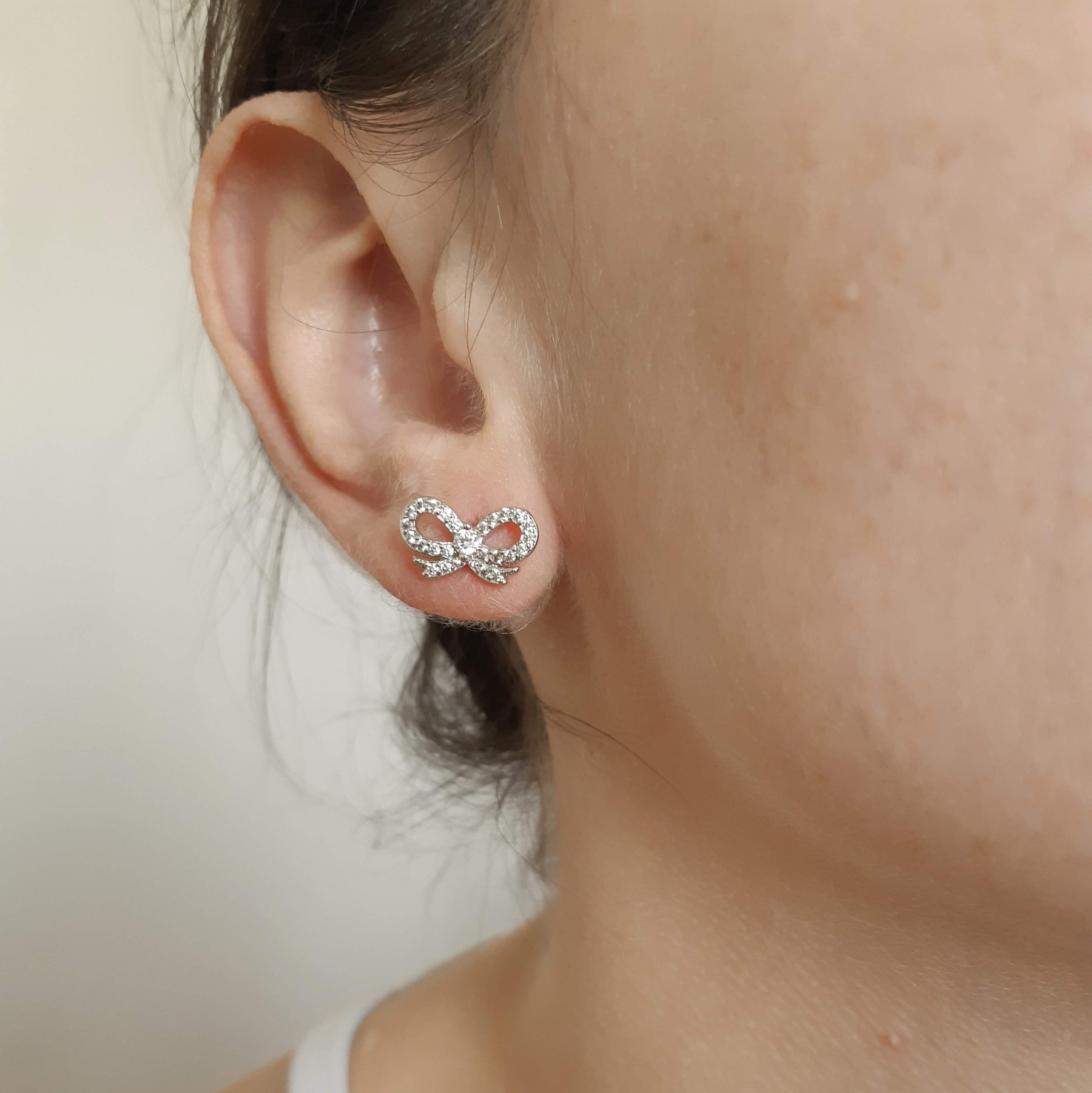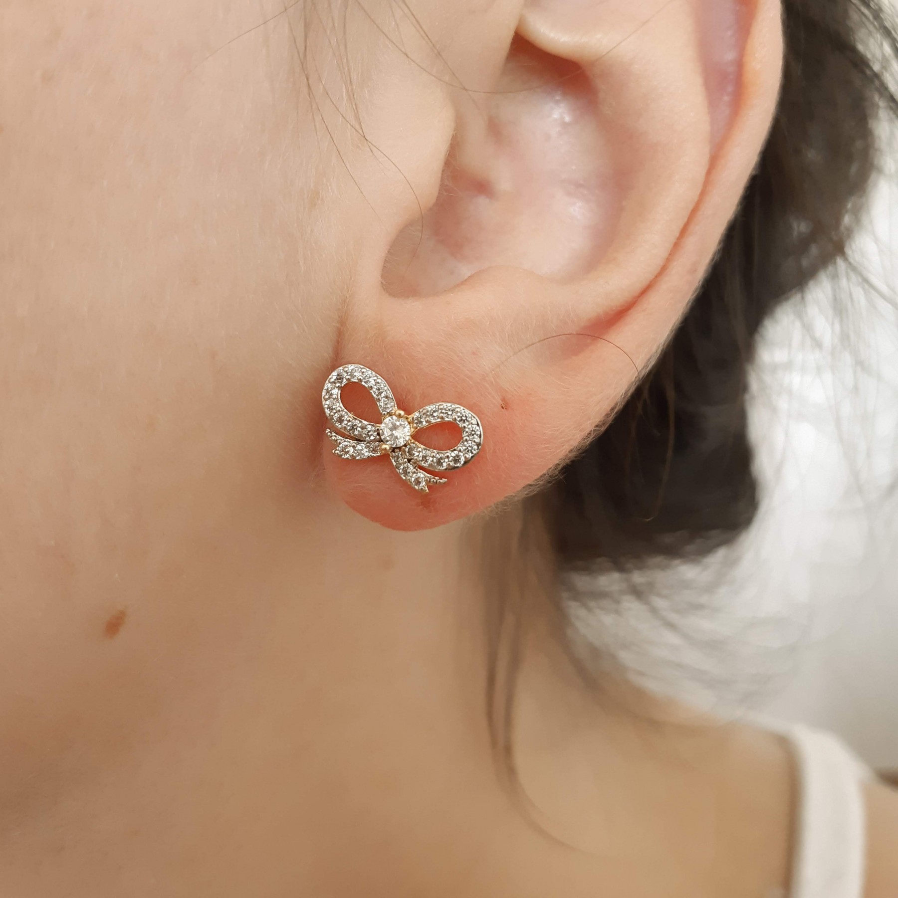 Descrição: Brinco (latão) laço com microzircônias. Disponivel na cor cristal.