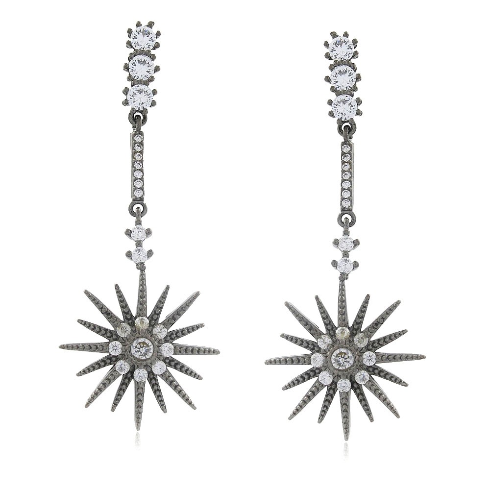 Descrição: Brinco (latão) com pedras de zircônia em balanço + sol com pedras de zircônia. Disponivel na cor cristal.