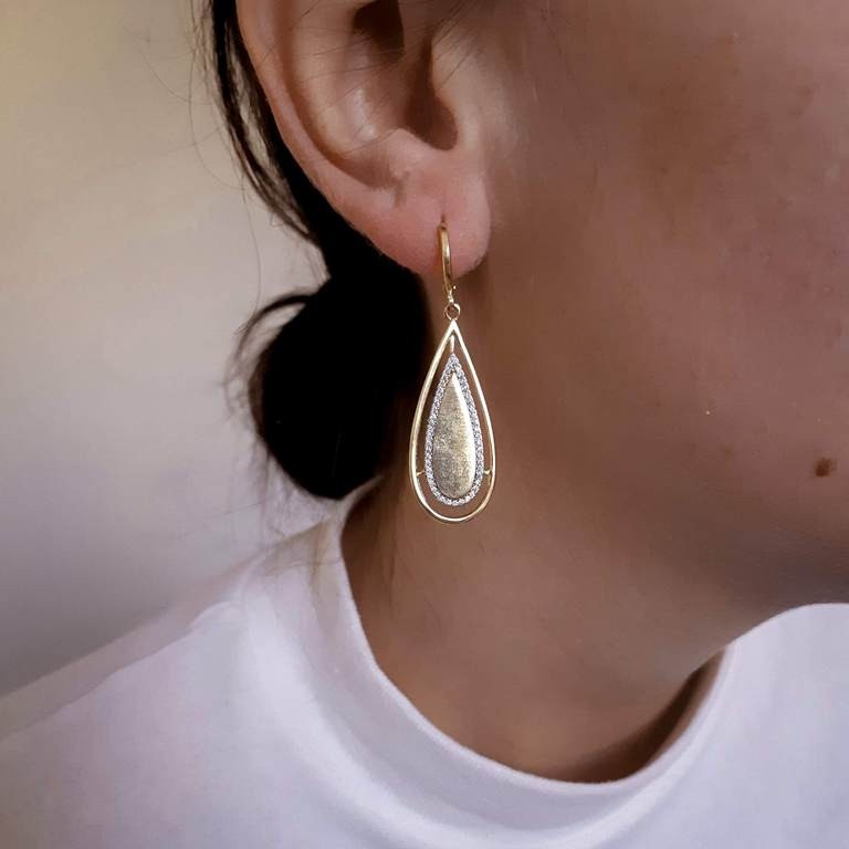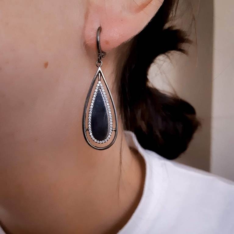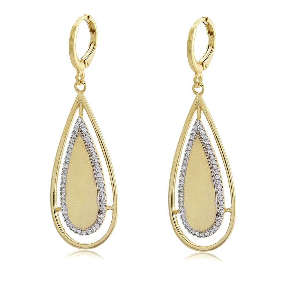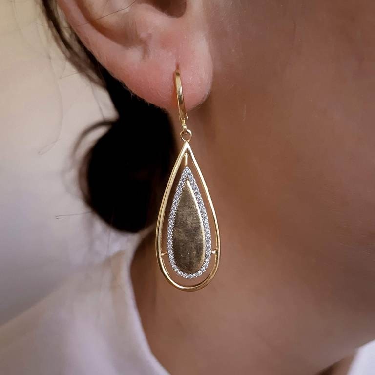 Descrição: Brinco gota (latão) em balanço trabalhado com microzircônias. Disponivel na cor cristal.