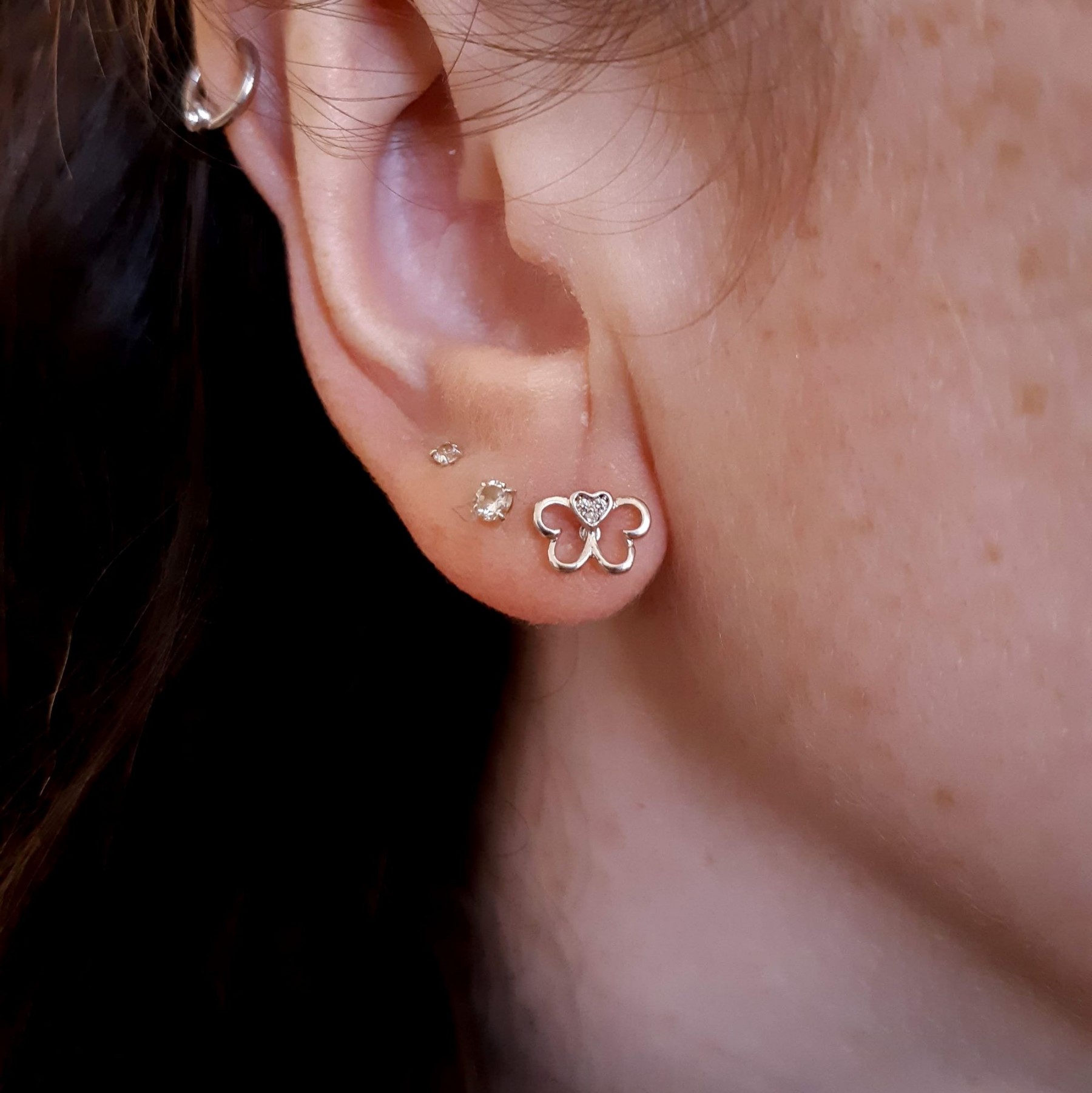 Descrição: Brinco borboleta (latão) com pedra zircônia. Disponivel na cor cristal.