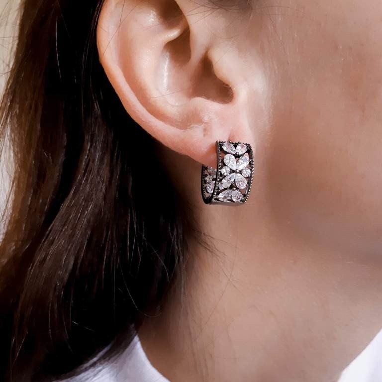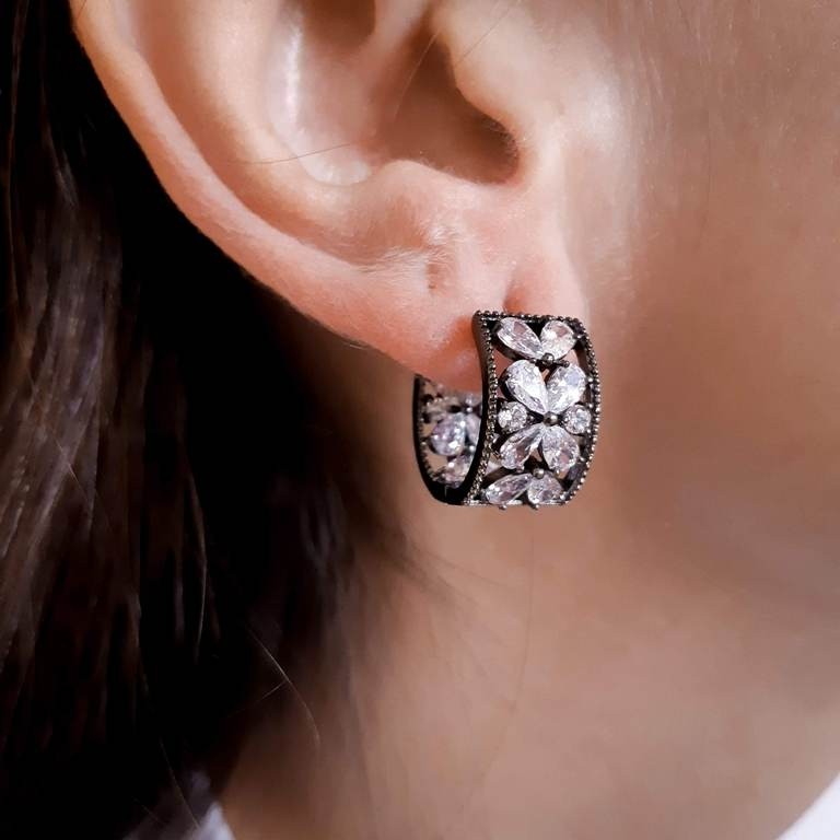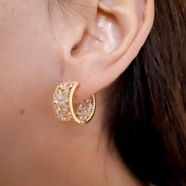 Descrição: Brinco de argola (latão) trabalhado com pedras gota zircônias. Disponivel na cor cristal.