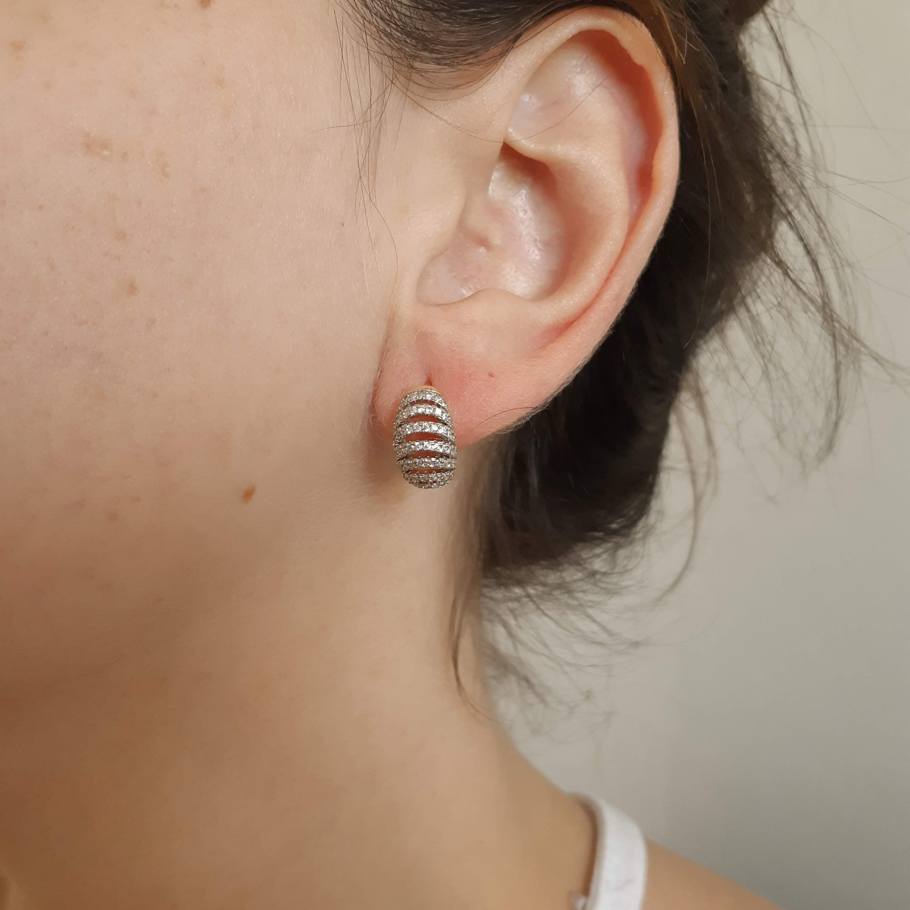 Descrição: Brinco (latão) de argola pequena trabalhada com microzircônia cravadas. Disponivel na cor cristal.