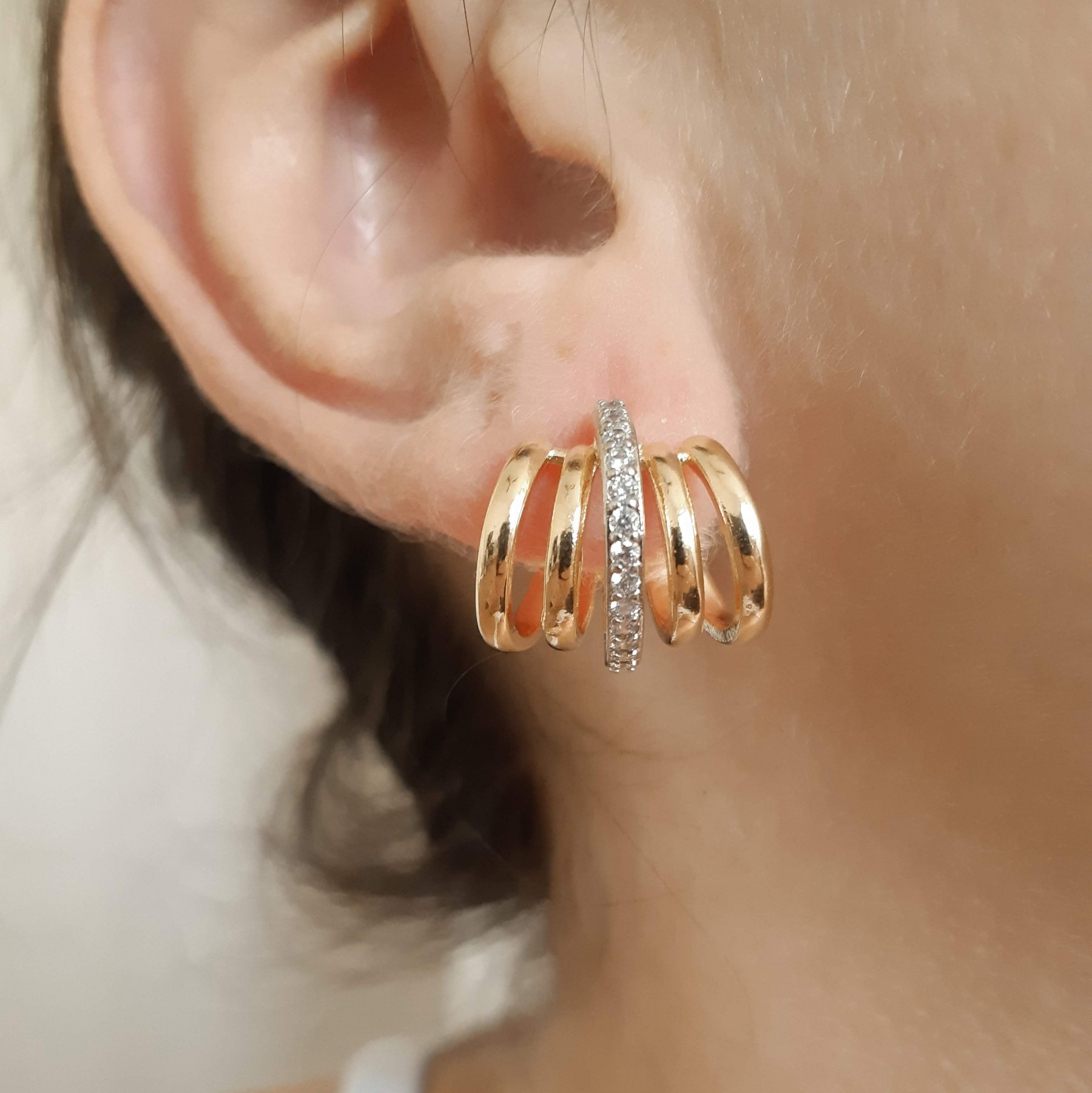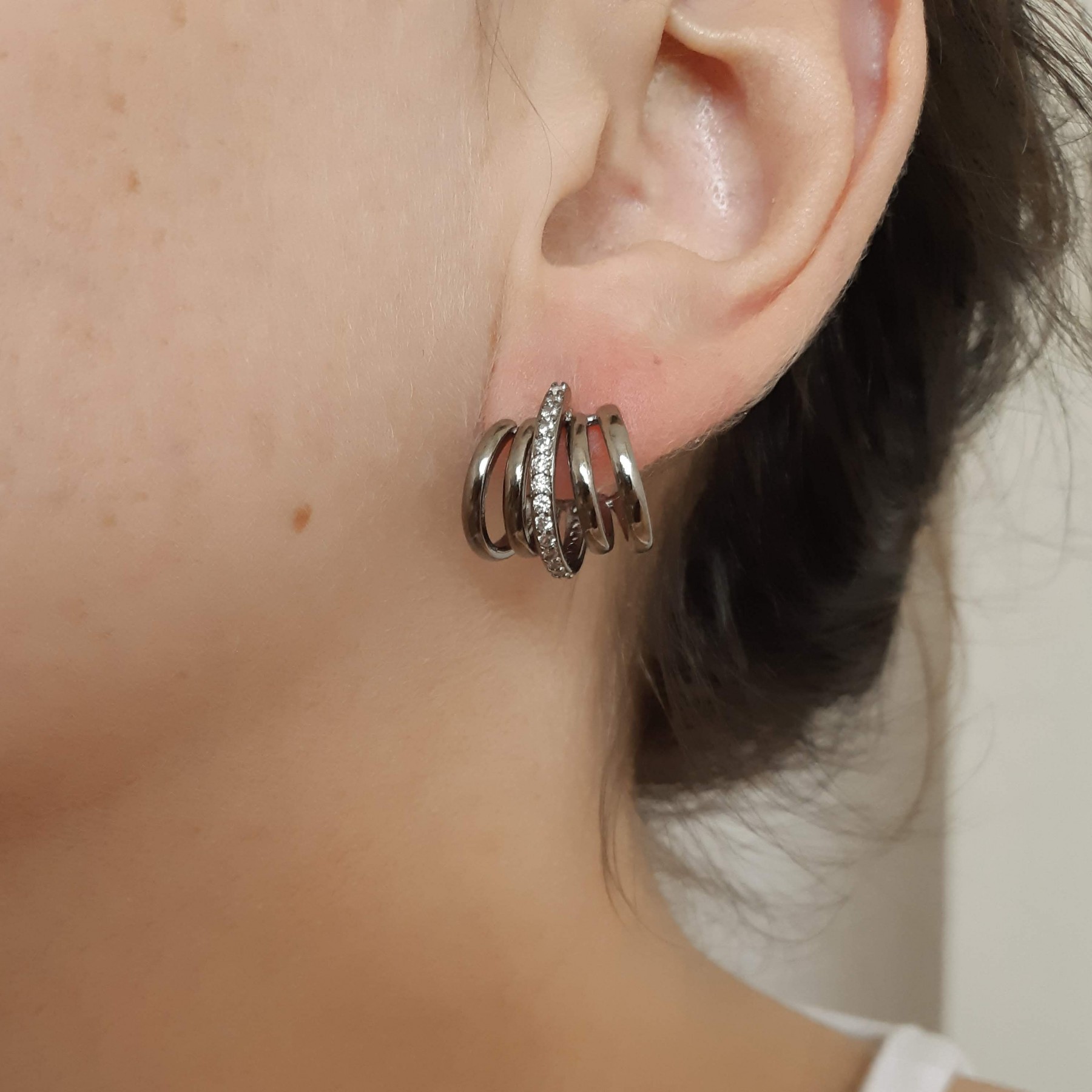 Descrição: Brinco (latão) 5 arcos com microzircônia no arco central . Disponivel na cor cristal.