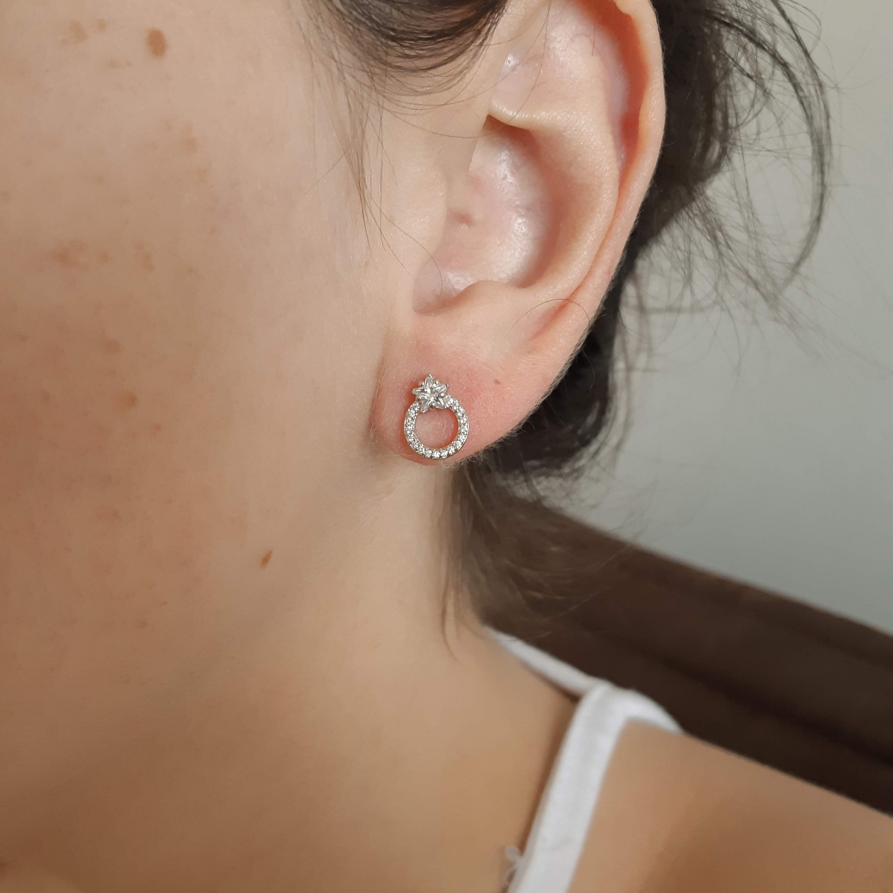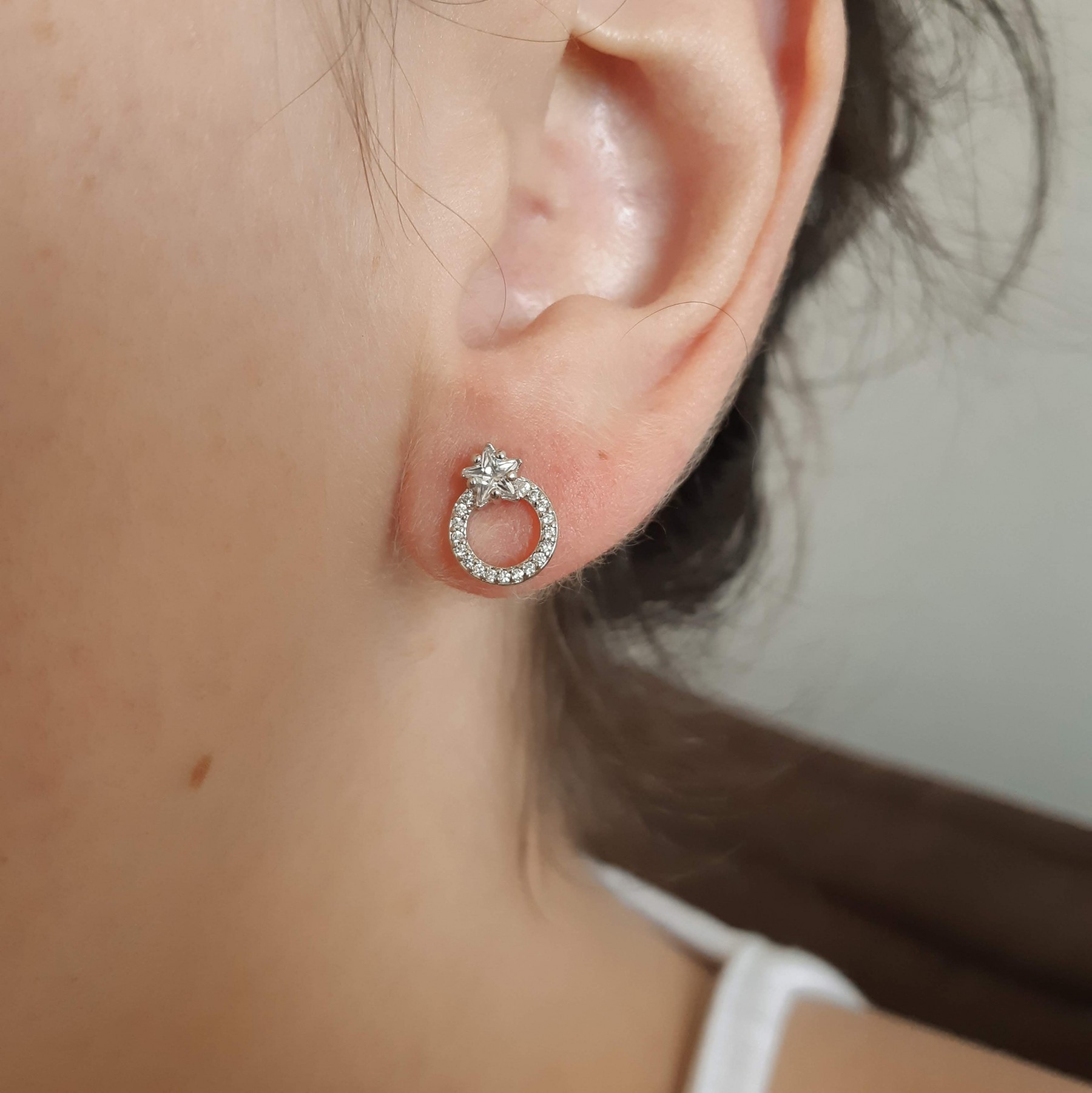 Descrição: Brinco (latão) circulo com microzircônia e zircônia em forma de estrela. Disponivel na cor cristal.