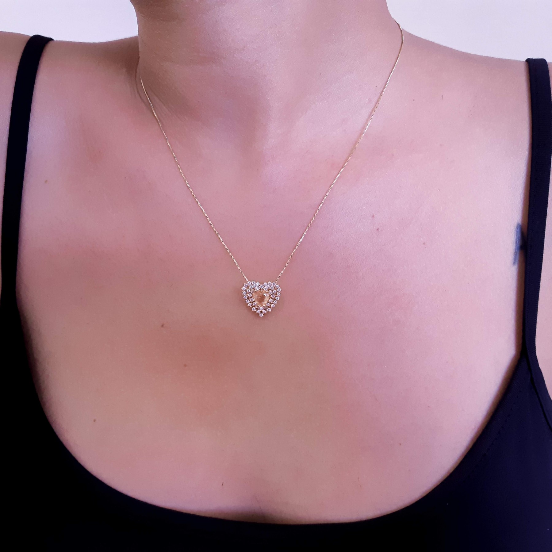 Descrição: brinco coração com pedra colorida e pedras cristal de zircônia + corrente veneziana (fina) e pingente igual ao brinco. Disponivel nas cores azul turquesa, verde e champanhe.