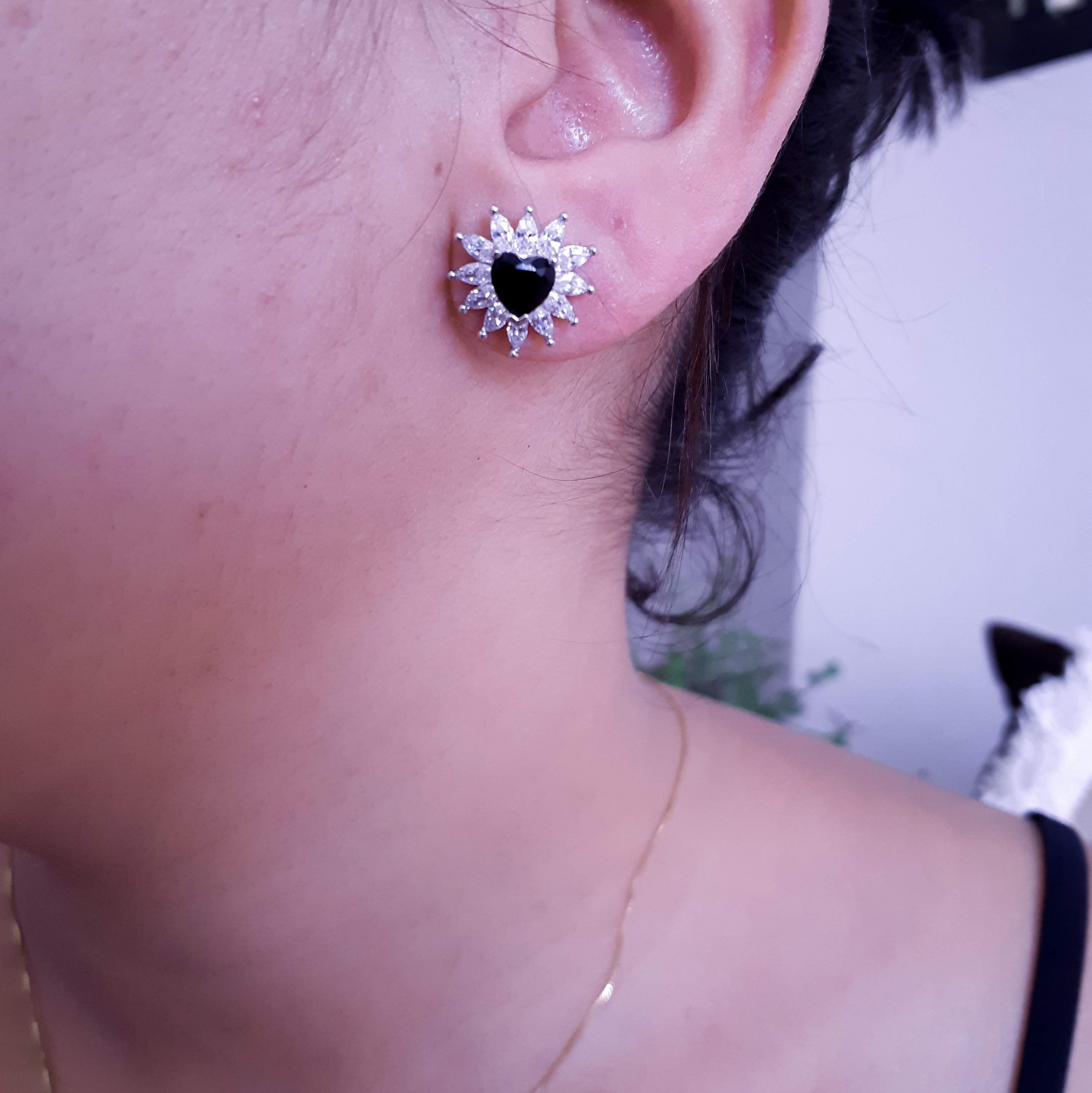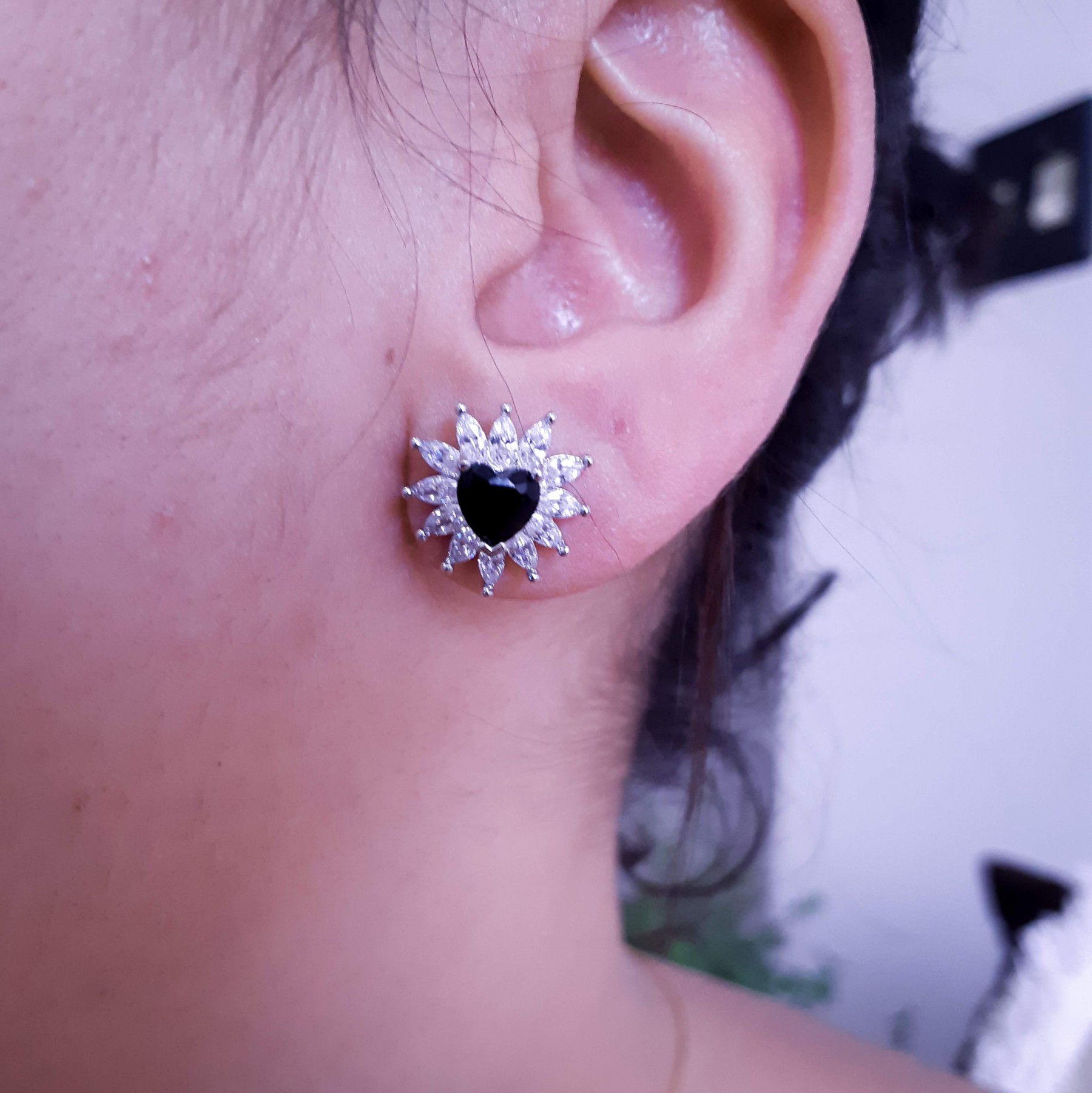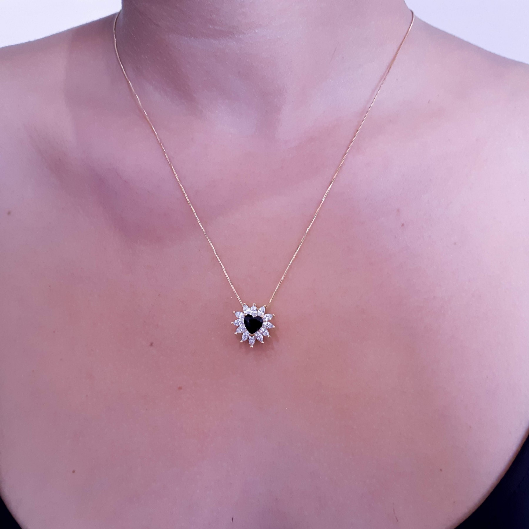 Descrição: brinco coração com pedra colorida e pedras cristal de zircônia + corrente veneziana (fina) e pingente igual ao brinco. Disponivel nas cores azul turquesa, verde, preto e azul.