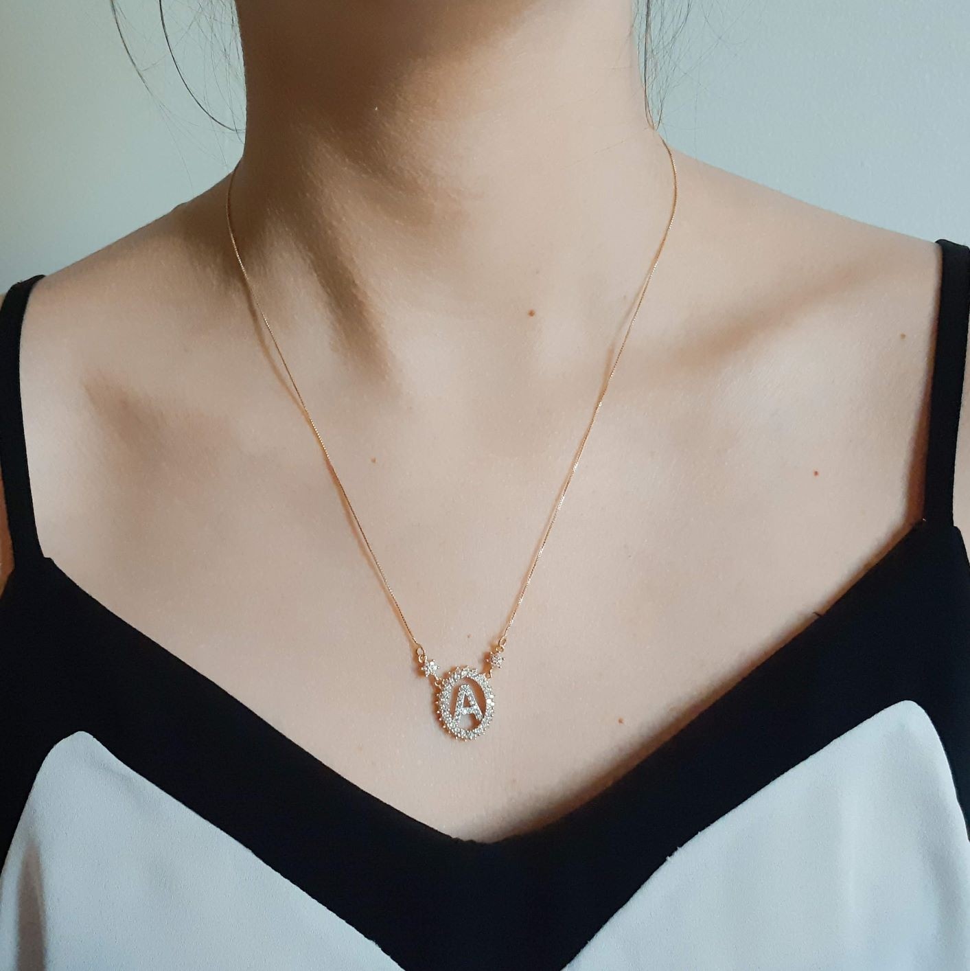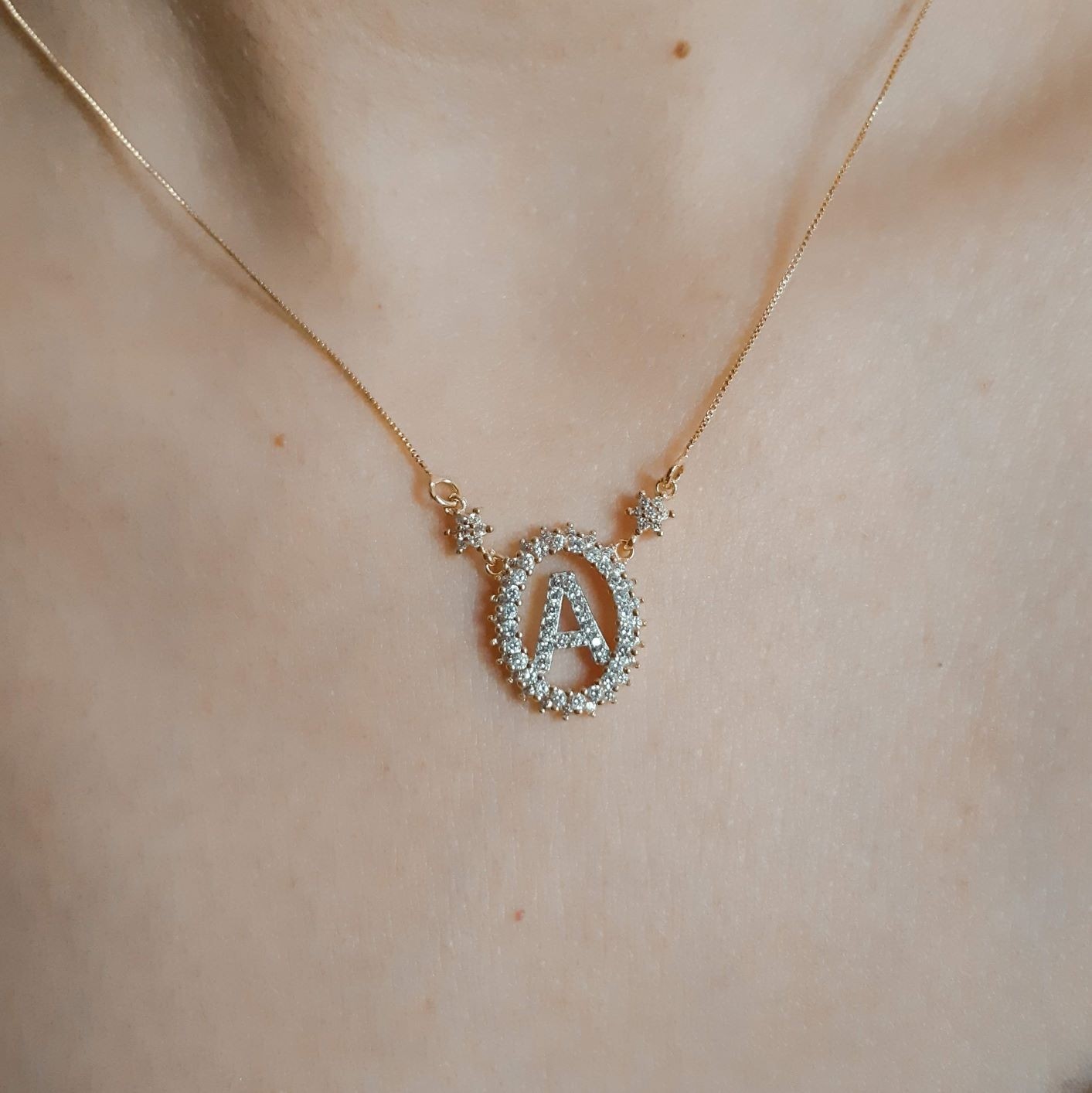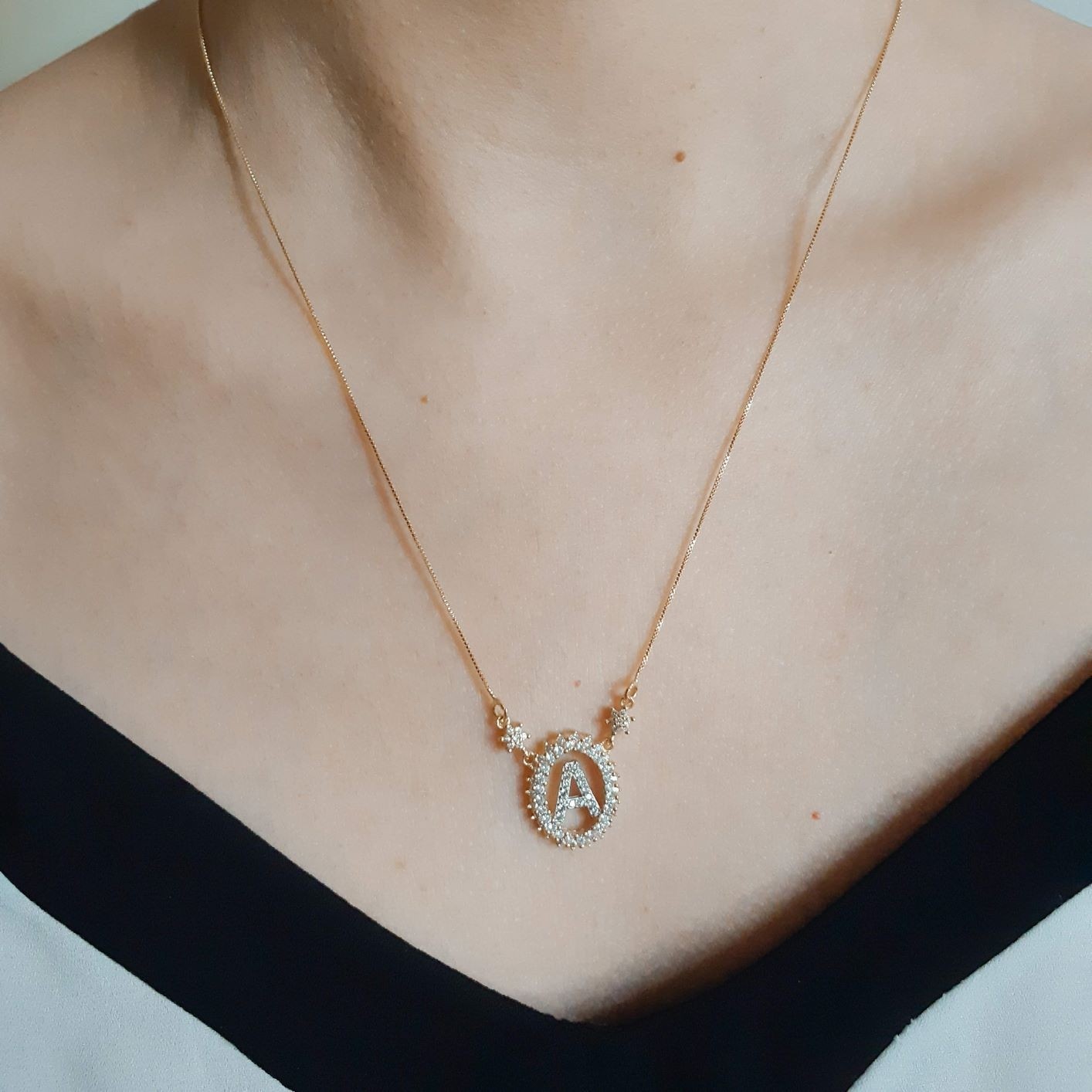 Descrição: corrente veneziana (fina) com fecho e extensor + pingente de letra em pedras (zirconia). Disponivel nas cores azul turqueza, pink, cristal, branco, preto, azul e rubi.