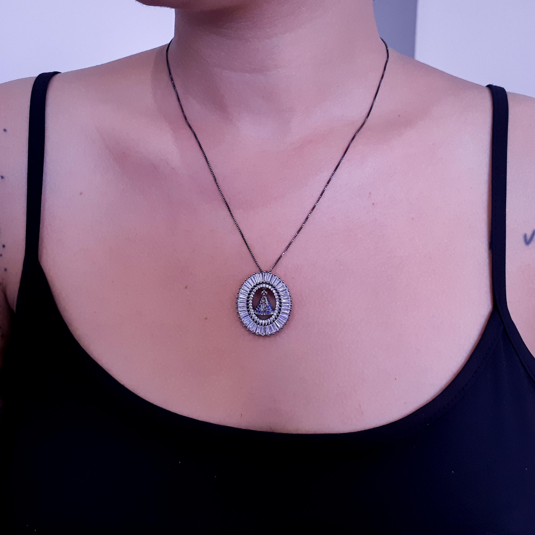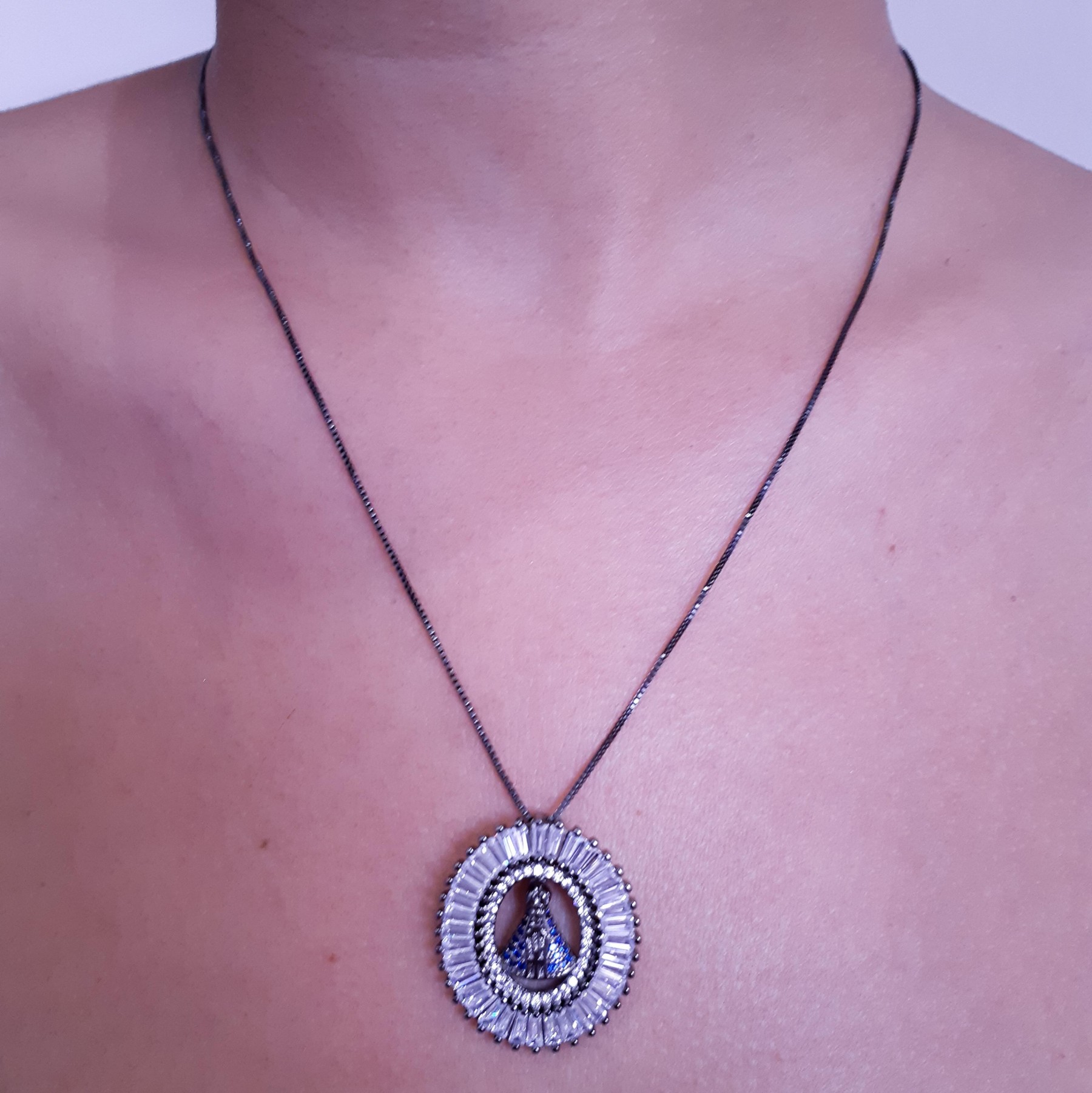 Gargantilha Mandala+Nossa Senhora, esse modelo delicado pode ser usado combinado com outras gargantilhas ou individual.